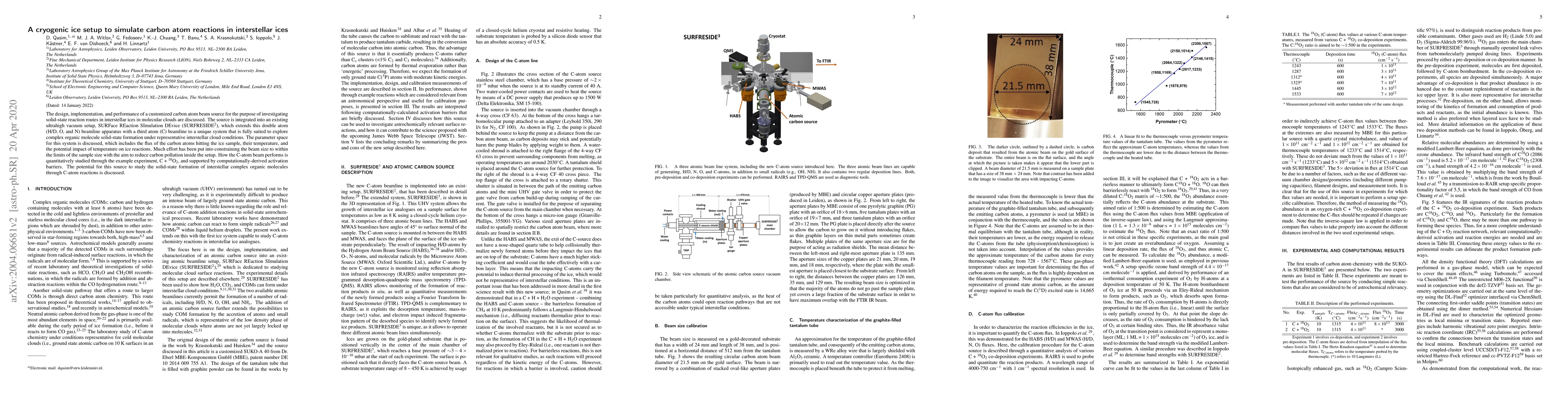 This paper details the development of a cryogenic ice setup to simulate carbon atom reactions in interstellar ices, integrating a new carbon atom beam source into an ultrahigh vacuum apparatus. The study explores the formation of complex organic molecules in molecular clouds, examining the performance of the C-atom beam through an example experiment and discussing the potential for studying solid-state reactions under interstellar conditions.