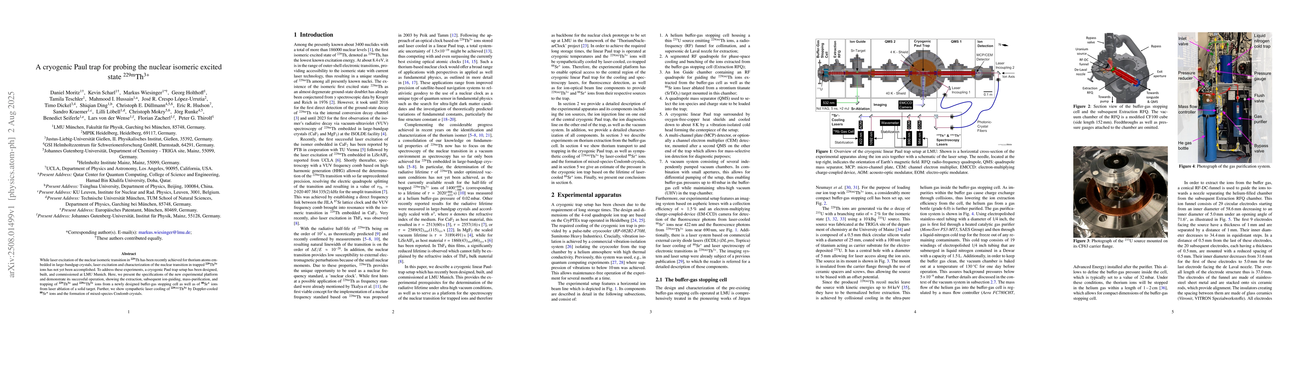 While laser excitation of the nuclear isomeric transition in $^{229}$Th has been recently achieved for thorium atoms embedded in large-bandgap crystals, laser excitation and characterization of the nuclear transition in trapped $^{229}$Th$^{3+}$ ions has not yet been accomplished. To address these experiments, a cryogenic Paul trap setup has been designed, built, and commissioned at LMU Munich. Here, we present the specifications of the new experimental platform and demonstrate its successful operation, showing the extraction, subsequent ion-guiding, mass-purification, and trapping of $^{229}$Th$^{3+}$ and $^{229\text{m}}$Th$^{3+}$ ions from a newly designed buffer-gas stopping cell as well as of $^{88}$Sr$^{+}$ ions from laser ablation of a solid target. Further, we show sympathetic laser cooling of $^{229\text{(m)}}$Th$^{3+}$ by Doppler-cooled $^{88}$Sr$^{+}$ ions and the formation of mixed-species Coulomb crystals.