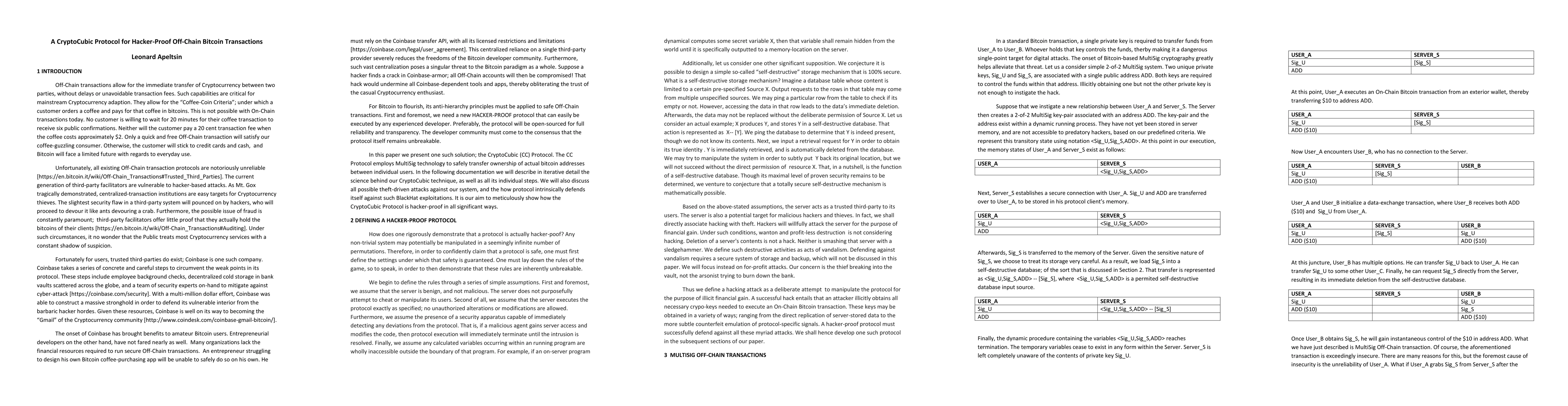 This paper introduces a new CryptoCubic Protocol for secure off-chain Bitcoin transactions, aiming to eliminate delays and fees while ensuring hacker-proof security, addressing the vulnerabilities of existing third-party systems and promoting transparency through open-sourcing.