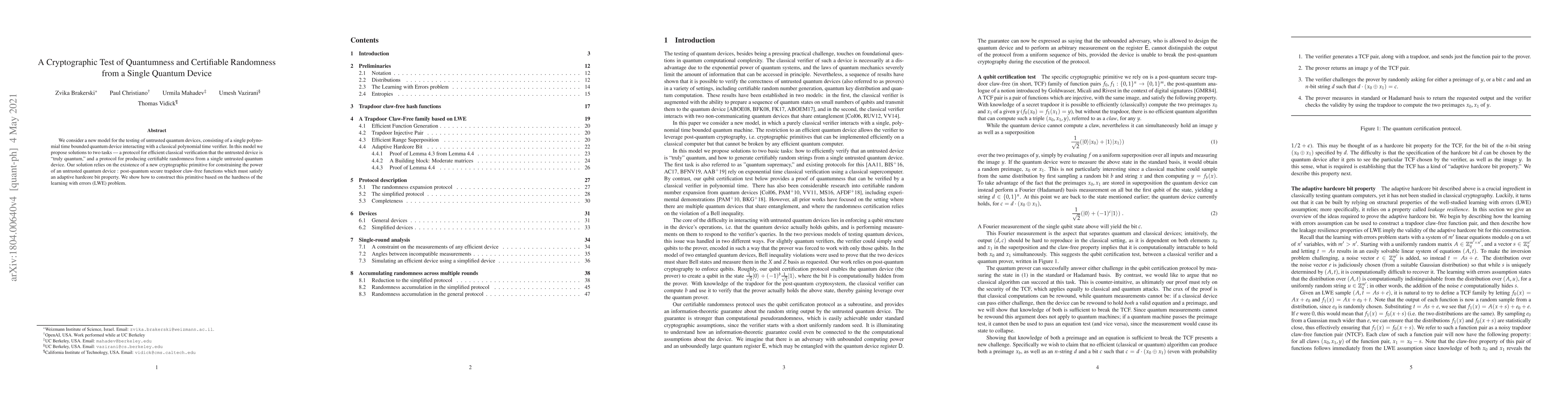 Thomas Vidick, Urmila Mahadev, Umesh Vazirani