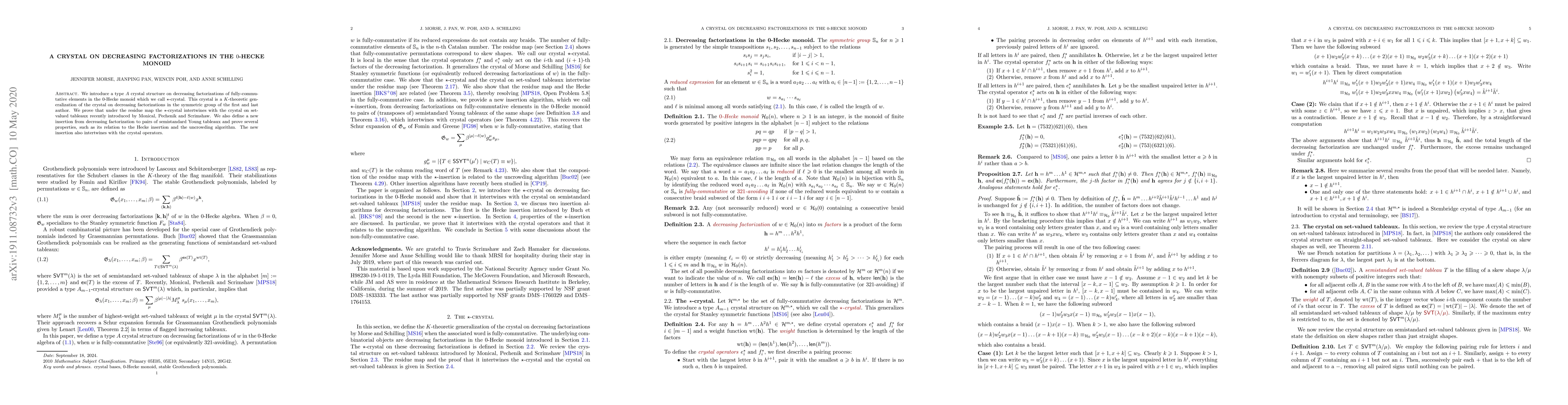 This paper introduces a crystal structure on decreasing factorizations of fully-commutative elements in the 0-Hecke monoid, termed the $\star$-crystal, which generalizes a similar structure in the symmetric group. It demonstrates intertwining with the crystal on set-valued tableaux and defines a new insertion method relating to semistandard Young tableaux, showing its compatibility with crystal operators.