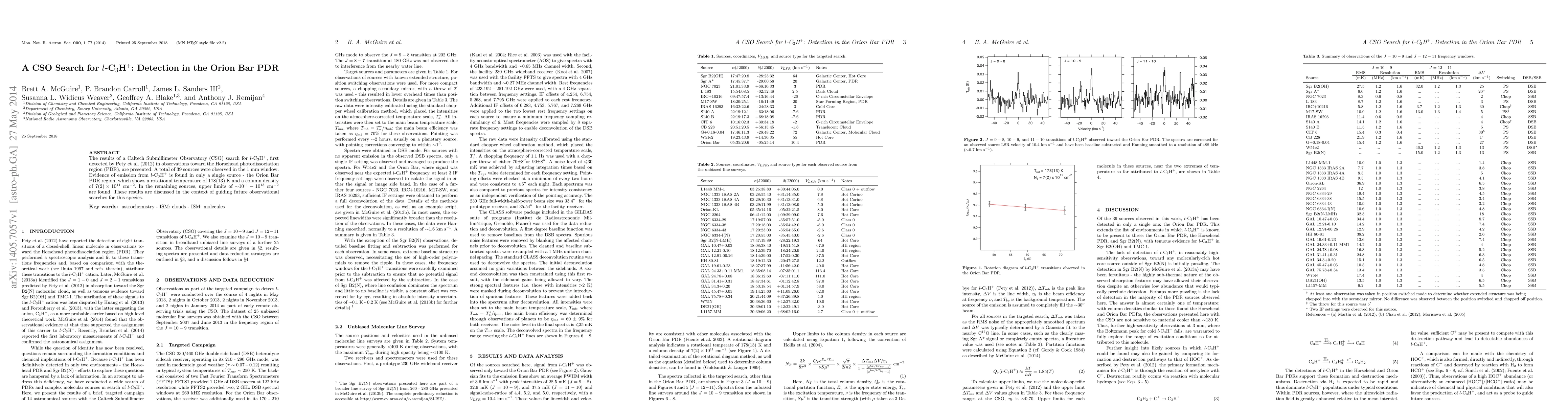 A Caltech Observatory detected a single source of $l$-C$_3$H$^+$ in the Orion Bar PDR region at a column density of 7 x $10^{11}$ cm$^{-2}$. The results provide new insights for future searches for this species.
