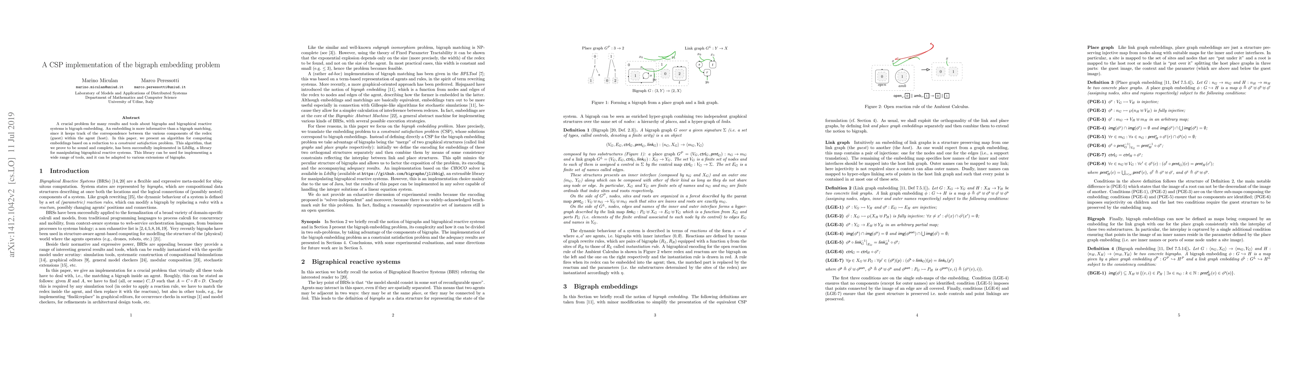 This paper presents an algorithm for computing bigraph embeddings based on a constraint satisfaction problem, implemented in LibBig, ensuring sound and complete correspondence between guest and host components. The library supports a wide range of tools for bigraphical reactive systems.