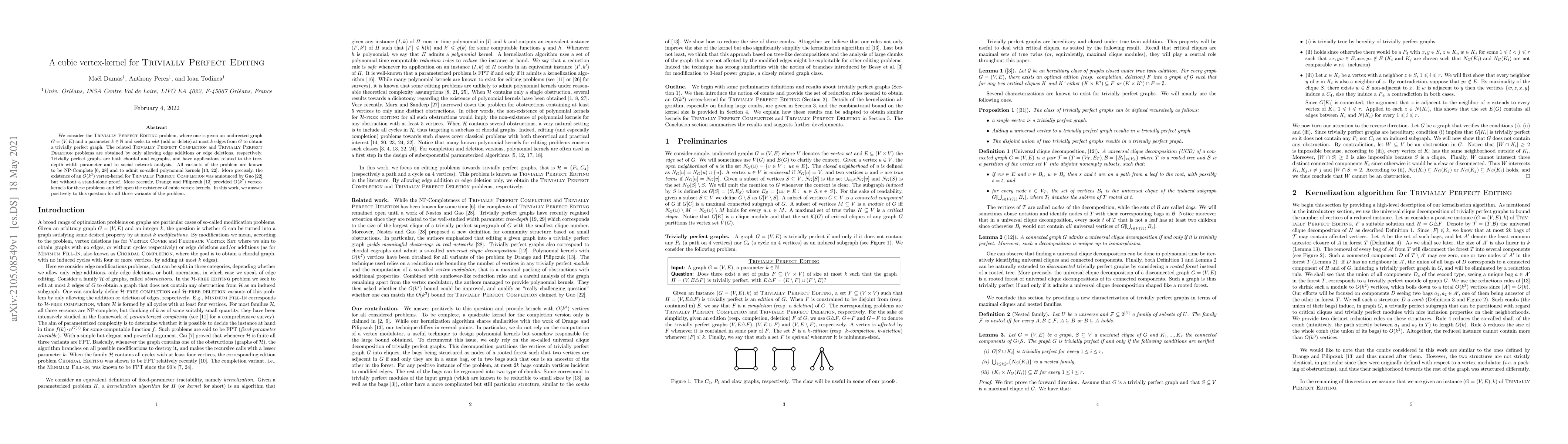 We consider the Trivially Perfect Editing problem, where one is given an undirected graph $G = (V,E)$ and a parameter $k \in \mathbb{N}$ and seeks to edit (add or delete) at most $k$ edges from $G$ to obtain a trivially perfect graph. The related Trivially Perfect Completion and Trivially Perfect Deletion problems are obtained by only allowing edge additions or edge deletions, respectively. Trivially perfect graphs are both chordal and cographs, and have applications related to the tree-depth width parameter and to social network analysis. All variants of the problem are known to be NP-Complete and to admit so-called polynomial kernels. More precisely, the existence of an $O(k^3)$ vertex-kernel for Trivially Perfect Completion was announced by Guo (ISAAC 2007) but without a stand-alone proof. More recently, Drange and Pilipczuk (Algorithmica 2018) provided $O(k^7)$ vertex-kernels for these problems and left open the existence of cubic vertex-kernels. In this work, we answer positively to this question for all three variants of the problem.