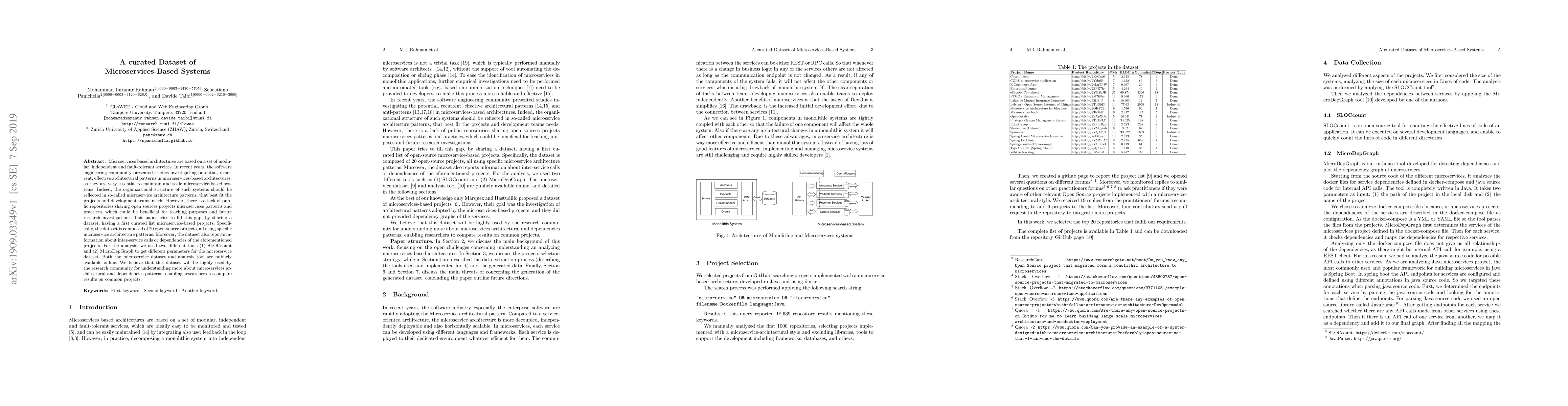 A curated dataset of 20 open-source microservices-based projects is presented to help researchers study architectural patterns and dependencies in these systems. The dataset provides valuable insights for understanding common practices and improving the scalability of microservice-based architectures.