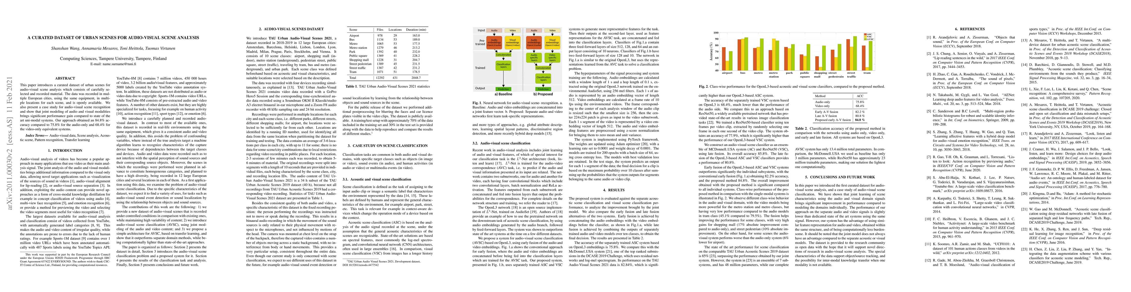 A new dataset of urban scenes for audio-visual scene analysis has been created, showing that joint modeling of audio and visual modalities improves recognition accuracy.