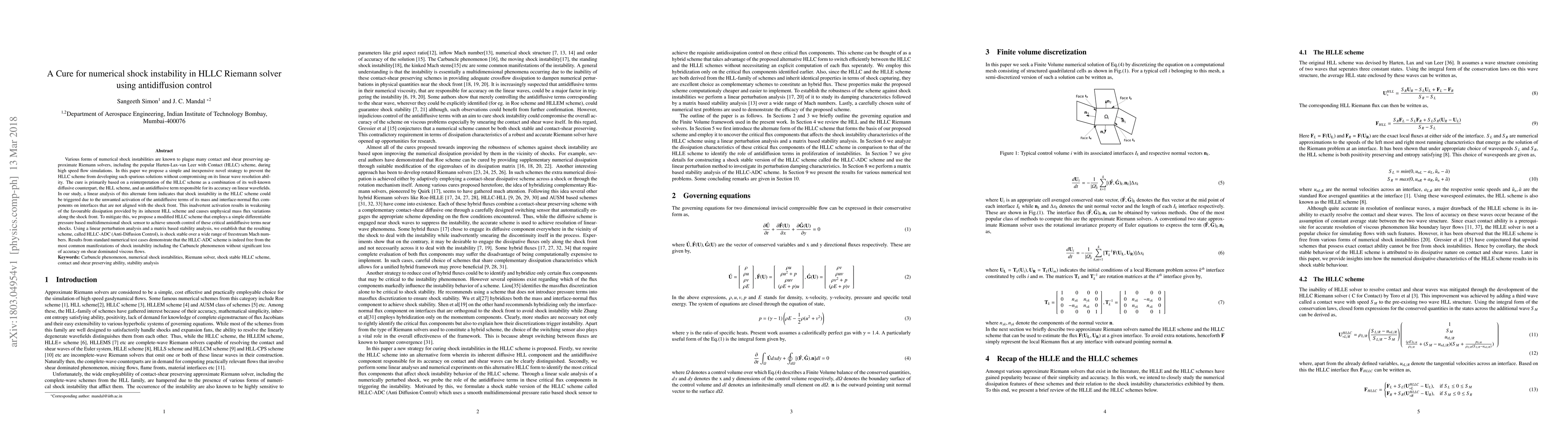This paper proposes a novel HLLC-ADC scheme to prevent shock instabilities in the HLLC Riemann solver by controlling antidiffusive terms using a differentiable pressure-based shock sensor. The modified HLLC scheme is shown to be shock stable and maintains accuracy in shear-dominated flows.