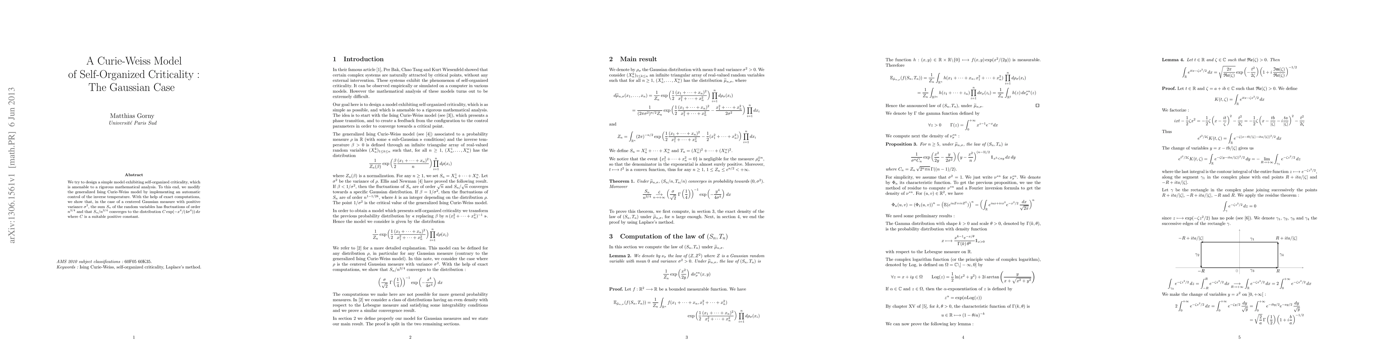 This paper proposes a modified Curie-Weiss model to demonstrate self-organized criticality, focusing on a Gaussian case. Exact computations reveal that the sum of random variables exhibits fluctuations of order $n^{3/4}$, converging to a specific distribution as $n$ increases.