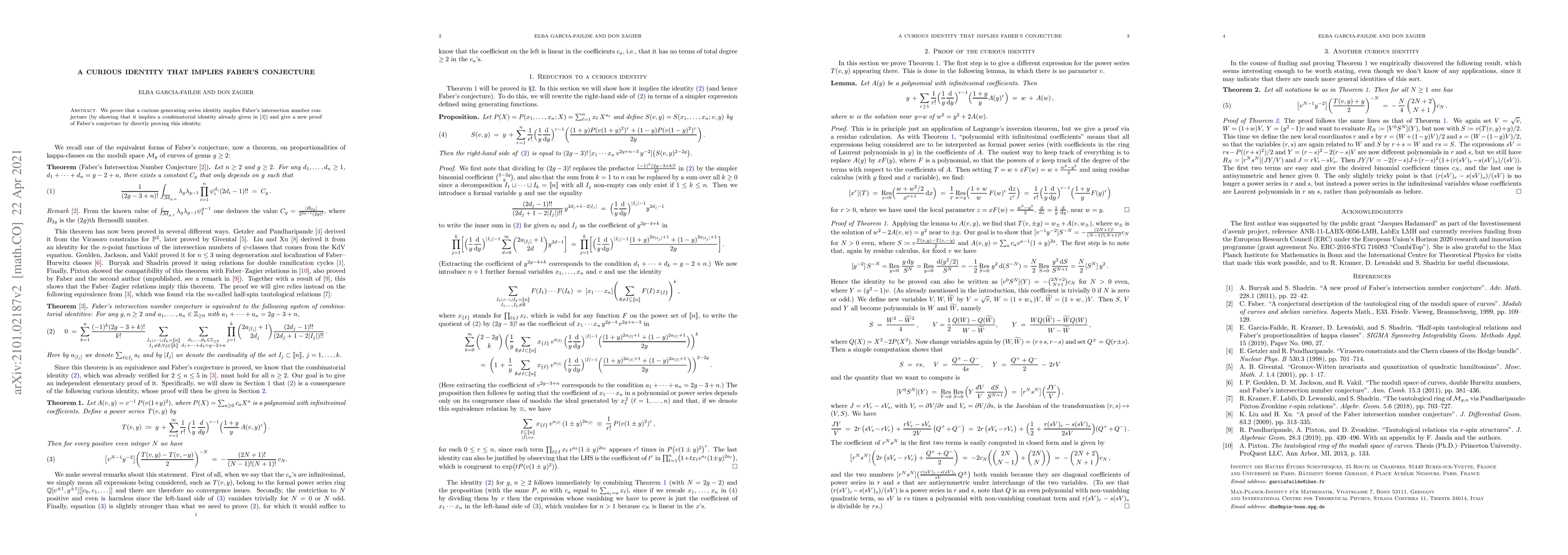 We prove that a curious generating series identity implies Faber's intersection number conjecture (by showing that it implies a combinatorial identity already given in arXiv:1902.02742) and give a new proof of Faber's conjecture by directly proving this identity.