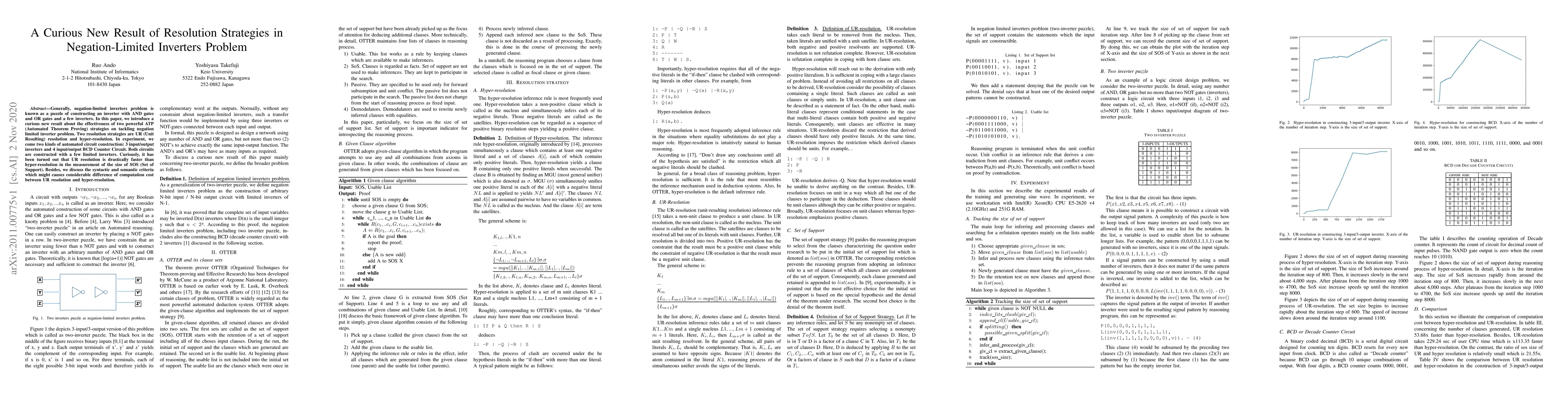 Generally, negation-limited inverters problem is known as a puzzle of constructing an inverter with AND gates and OR gates and a few inverters. In this paper, we introduce a curious new result about the effectiveness of two powerful ATP (Automated Theorem Proving) strategies on tackling negation limited inverter problem. Two resolution strategies are UR (Unit Resulting) resolution and hyper-resolution. In experiment, we come two kinds of automated circuit construction: 3 input/output inverters and 4 input/output BCD Counter Circuit. Both circuits are constructed with a few limited inverters. Curiously, it has been turned out that UR resolution is drastically faster than hyper-resolution in the measurement of the size of SOS (Set of Support). Besides, we discuss the syntactic and semantic criteria which might causes considerable difference of computation cost between UR resolution and hyper-resolution.