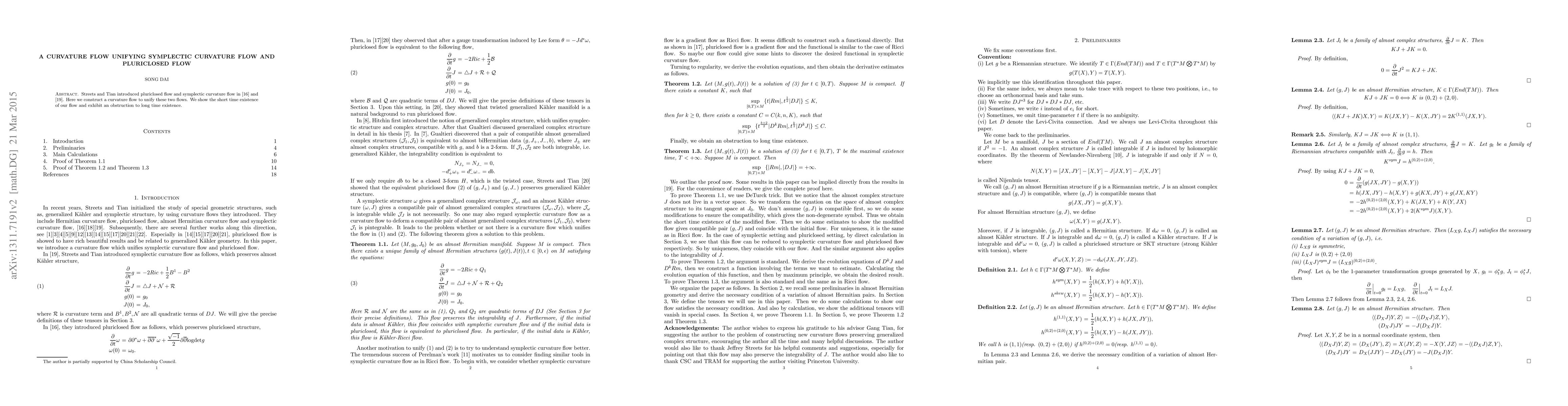 This paper constructs a unified curvature flow that integrates both the pluriclosed flow and the symplectic curvature flow, demonstrating short-time existence while identifying an obstruction to long-time existence.
