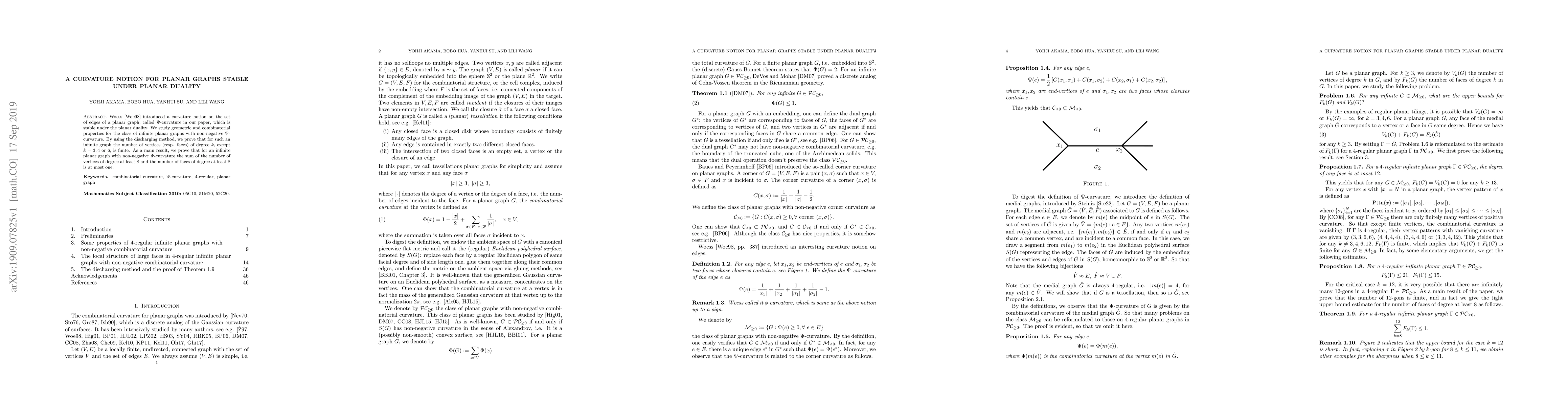 This paper introduces a $\Psi$-curvature notion on planar graphs that remains stable under planar duality. It demonstrates that infinite planar graphs with non-negative $\Psi$-curvature have finite numbers of vertices and faces of specific degrees, and proves that such graphs can have at most one vertex or face of degree at least 8.