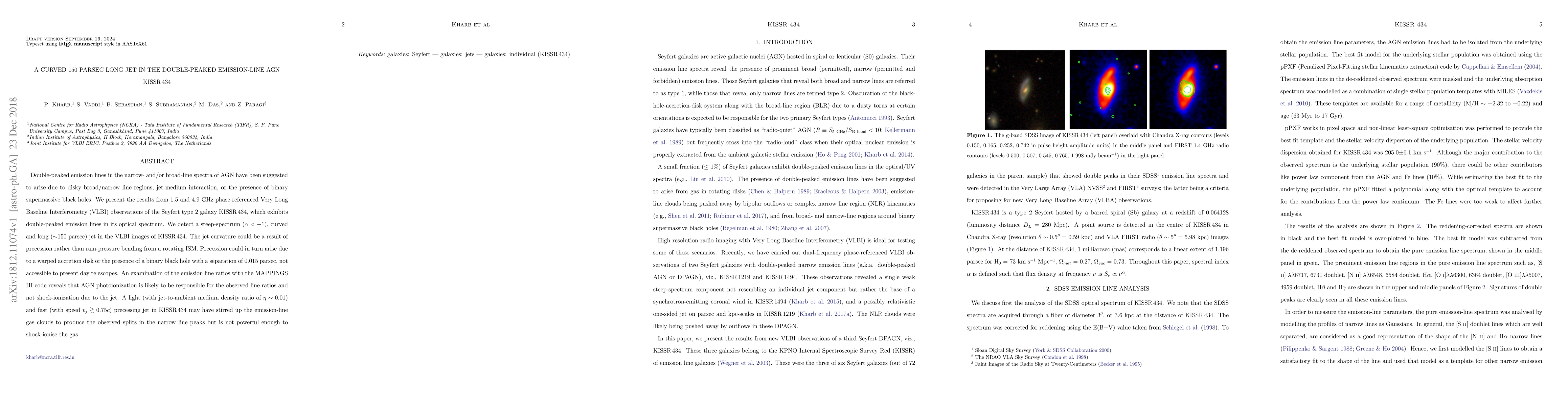 Astronomers discovered a curved 150 parsec long jet in the galaxy KISSR 434, suggesting precession over a binary black hole or warped accretion disk. The jet's properties indicate it may have stirred up emission-line gas clouds but is not powerful enough to shock-ionize the gas.