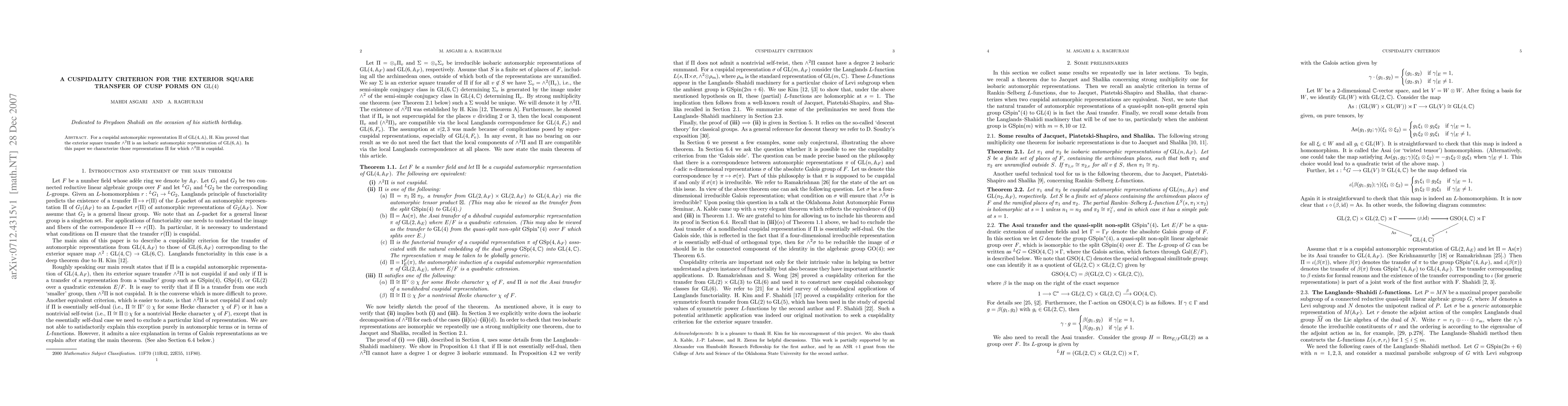 For a cuspidal automorphic representation \Pi of GL(4,A), H. Kim proved that the exterior square transfer \wedge^2\Pi is an isobaric automorphic representation of GL(6,A). In this paper we characterize those representations \Pi for which \wedge^2\Pi is cuspidal.