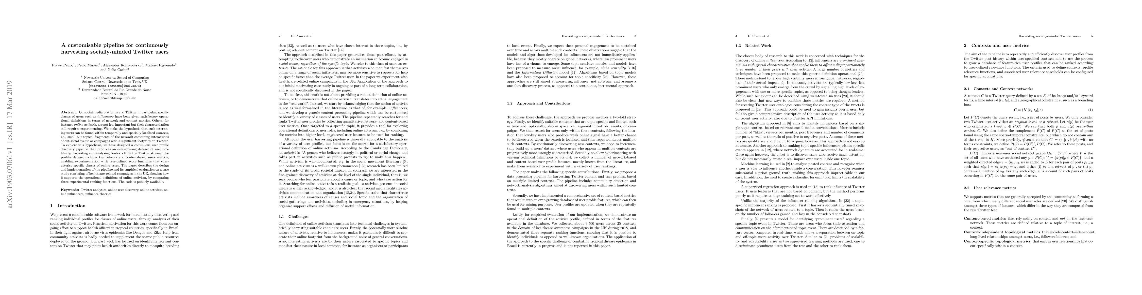 This paper presents a customizable pipeline for continuously identifying socially engaged Twitter users, focusing on online activists. The pipeline analyzes localized Twitter contexts to extract user profiles with network and content metrics. It's evaluated through a case study on UK healthcare campaigns, demonstrating its effectiveness in defining online activism using user-defined score functions. The code is publicly available.