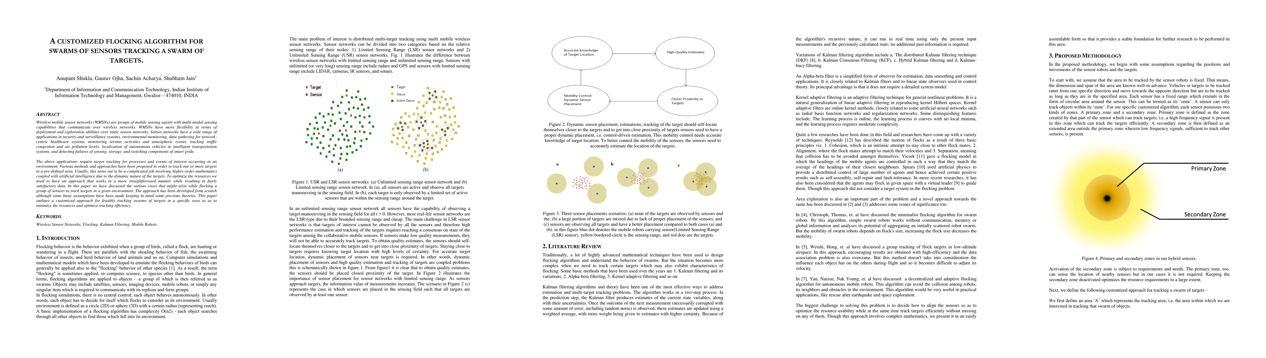 This paper proposes a customized flocking algorithm for wireless mobile sensor networks (WMSNs) to efficiently track swarms of targets in a given environment, aiming to optimize resource usage and tracking efficiency while addressing the complexities of dynamic target environments. The approach is developed from foundational principles, incorporating basic assumptions to balance feasibility and performance.