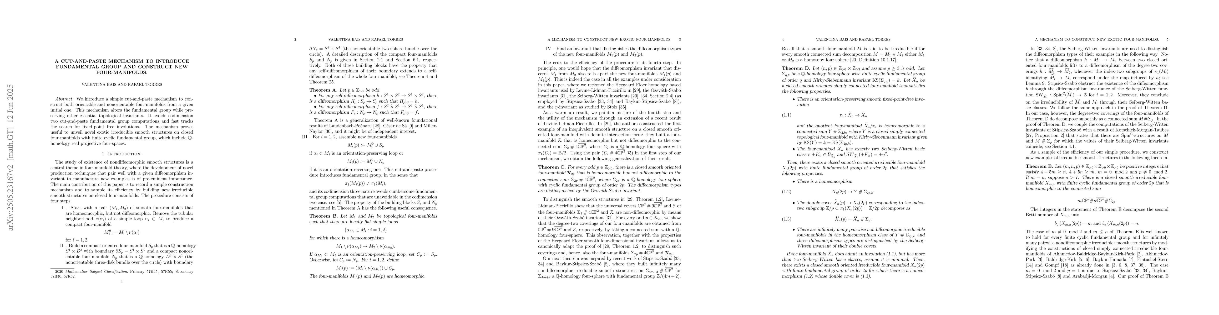 The paper introduces a cut-and-paste mechanism to construct new four-manifolds, altering the fundamental group while preserving other topological invariants, bypassing complex fundamental group computations.