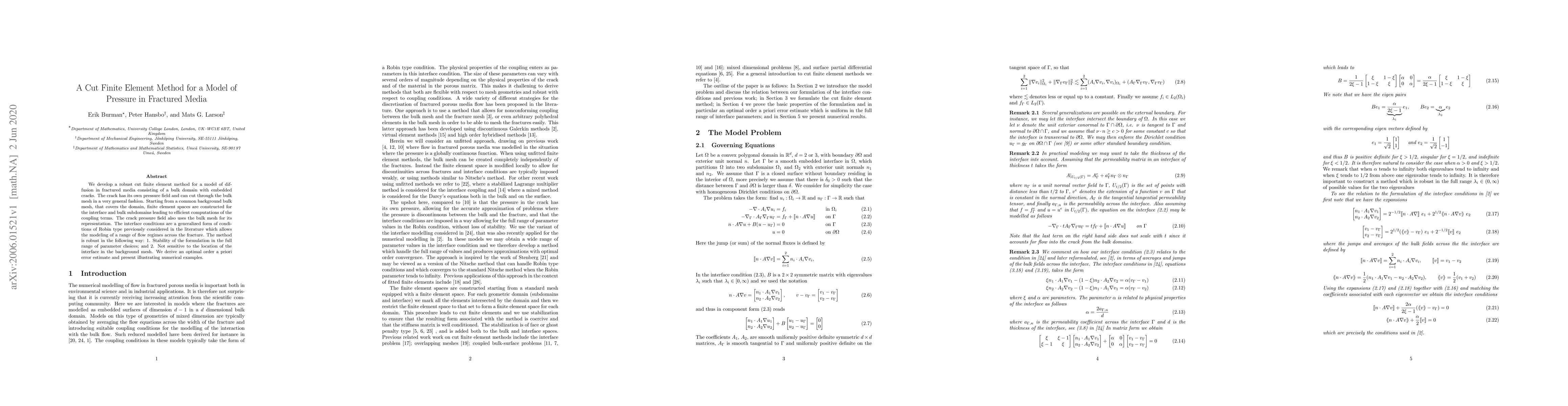We develop a robust cut finite element method for a model of diffusion in fractured media consisting of a bulk domain with embedded cracks. The crack has its own pressure field and can cut through the bulk mesh in a very general fashion. Starting from a common background bulk mesh, that covers the domain, finite element spaces are constructed for the interface and bulk subdomains leading to efficient computations of the coupling terms. The crack pressure field also uses the bulk mesh for its representation. The interface conditions are a generalized form of conditions of Robin type previously considered in the literature which allows the modeling of a range of flow regimes across the fracture. The method is robust in the following way: 1. Stability of the formulation in the full range of parameter choices; and 2. Not sensitive to the location of the interface in the background mesh. We derive an optimal order a priori error estimate and present illustrating numerical examples.