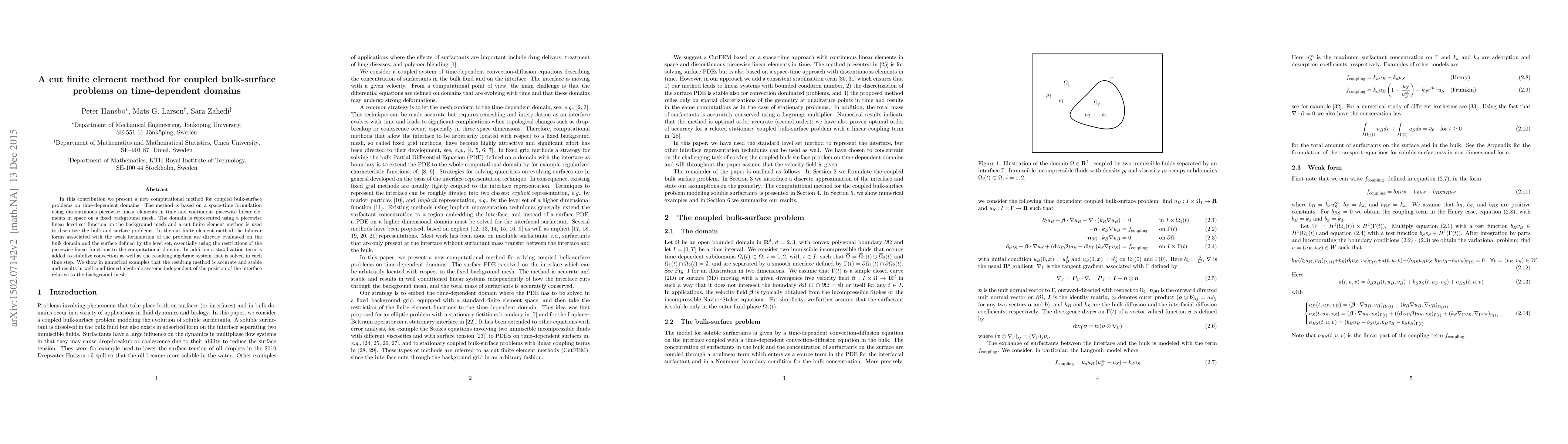 This paper introduces a new computational method for solving coupled bulk-surface problems on time-dependent domains using a cut finite element approach. The method employs discontinuous elements in time and continuous elements in space, with a stabilization term to ensure stability, demonstrating accuracy and stability in numerical examples.
