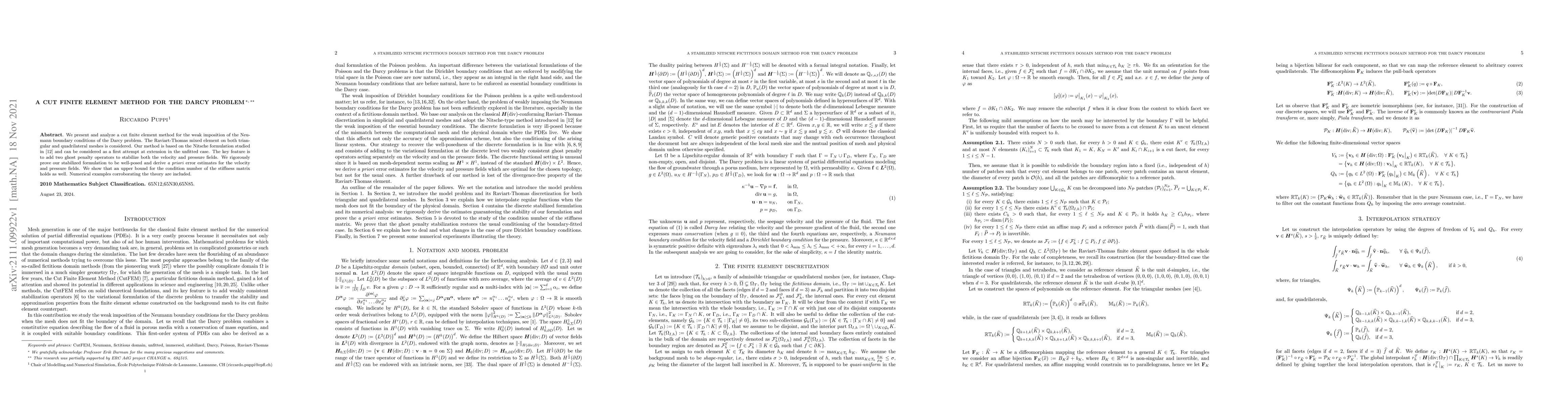 This paper introduces a cut finite element method for solving the Darcy problem with weak Neumann boundary conditions, employing Raviart-Thomas elements on triangular and quadrilateral meshes. The method stabilizes the velocity and pressure fields using ghost penalty operators, and proves well-posedness and derives a priori error estimates, supported by numerical examples.
