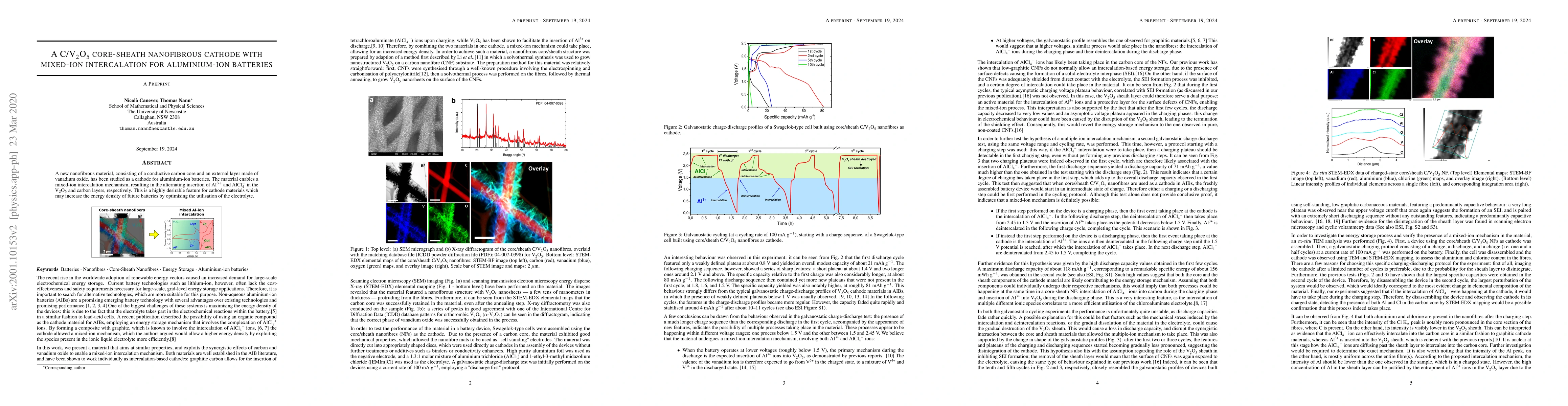 A new nanofibrous material, consisting of a conductive carbon core and an external layer made of vanadium oxide, has been studied as a cathode for aluminium-ion batteries. The material enables a mixed-ion intercalation mechanism, resulting in the alternating insertion of $\text{Al}^{3+}$ and $\text{AlCl}_4^-$ in the $\text{V}_2\text{O}_5$ and carbon layers, respectively. This is a highly desirable feature for cathode materials which may increase the energy density of future batteries by optimising the utilisation of the electrolyte.