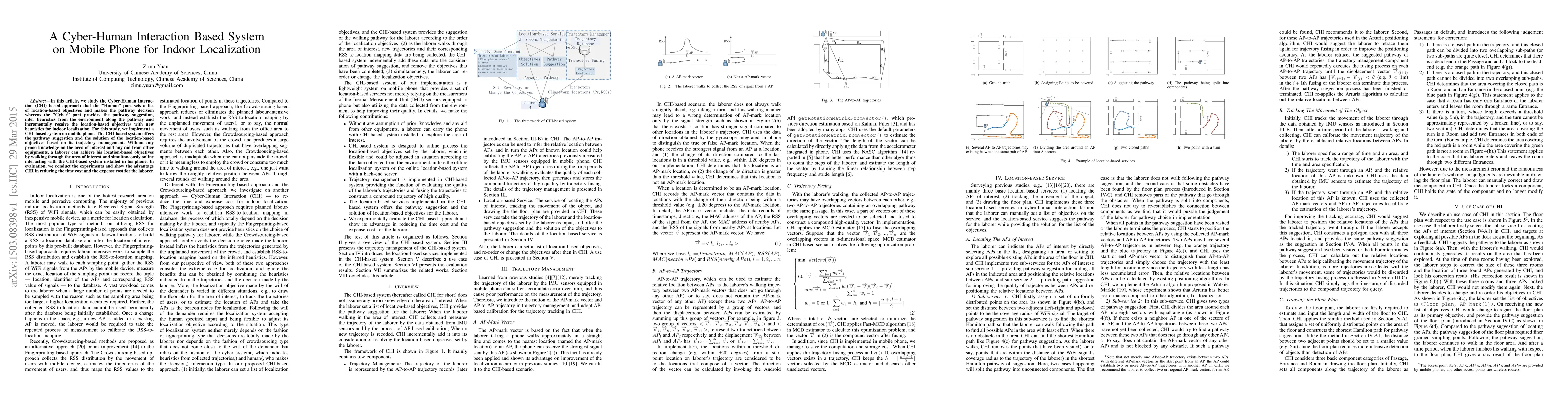 In this article, we study the Cyber-Human Interaction (CHI) based approach that the "Human" part sets a list of location-based objectives and makes the pathway decision whereas the "Cyber" part provides the pathway suggestion, infer heuristics from the environment along the pathway and incrementally resolve the location-based objectives with new heuristics for indoor localization. For this study, we implement a CHI-based system on mobile phone. The CHI-based system offers the pathway suggestion and the solution of the location-based objectives based on its trajectory management. Without any priori knowledge on the area of interest and any aid from other equipments, a laborer can achieve his location-based objectives by walking through the area of interest and simultaneously online interacting with the CHI-based system installed in his phone. In evaluation, we conduct the experiments and show the advantage CHI in reducing the time cost and the expense cost for the laborer.