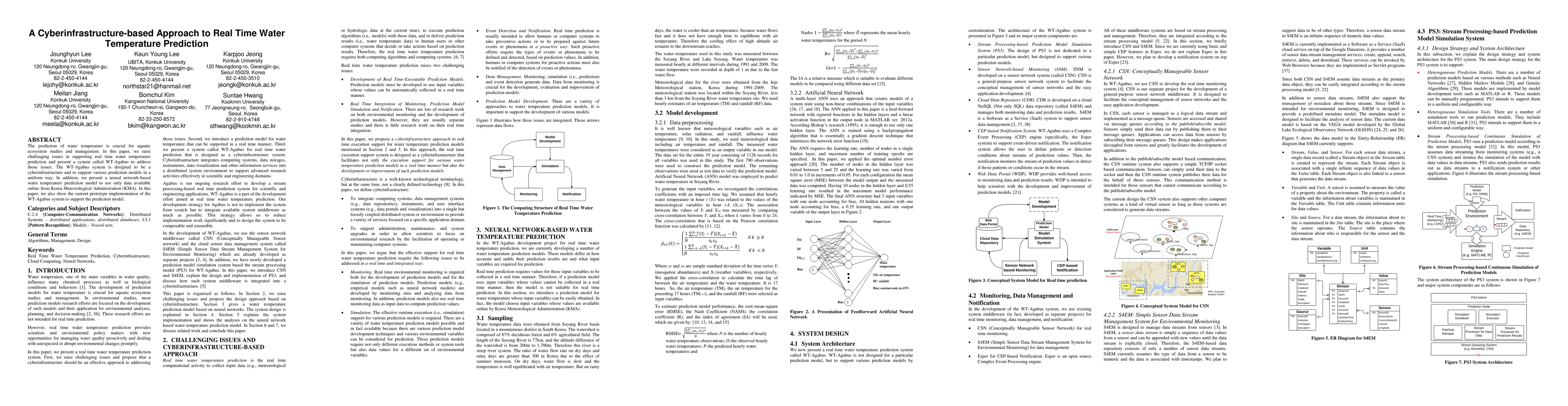 The research presents a cyberinfrastructure-based approach, WT-Agabus, for real-time water temperature prediction using a neural network model with data from Korea Meteorological Administration (KMA).