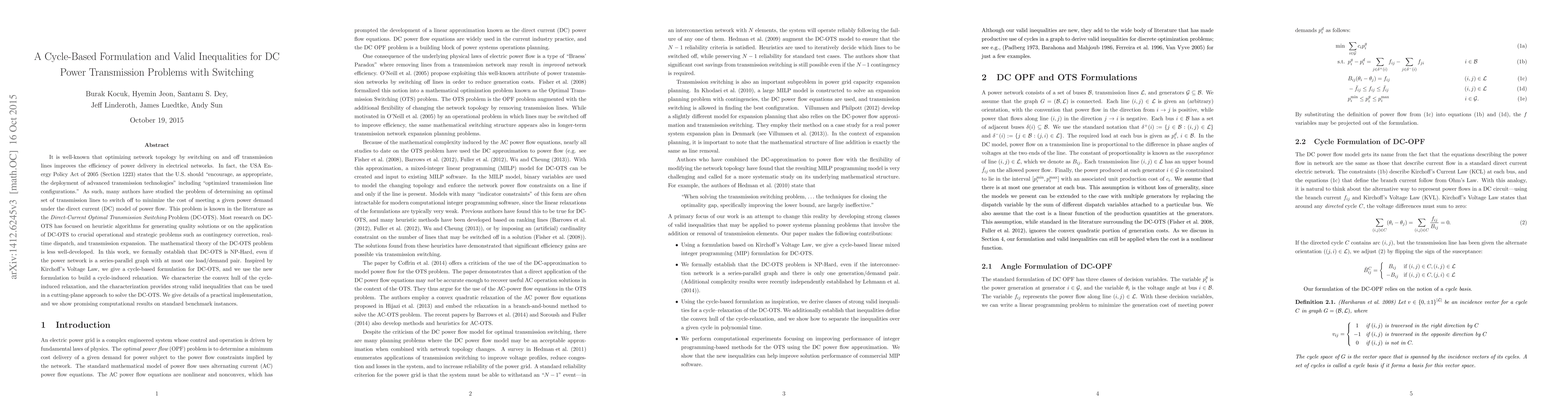 Researchers developed a cycle-based formulation for minimizing power transmission costs by switching off transmission lines, showing it is NP-Hard and providing strong valid inequalities to solve the problem.