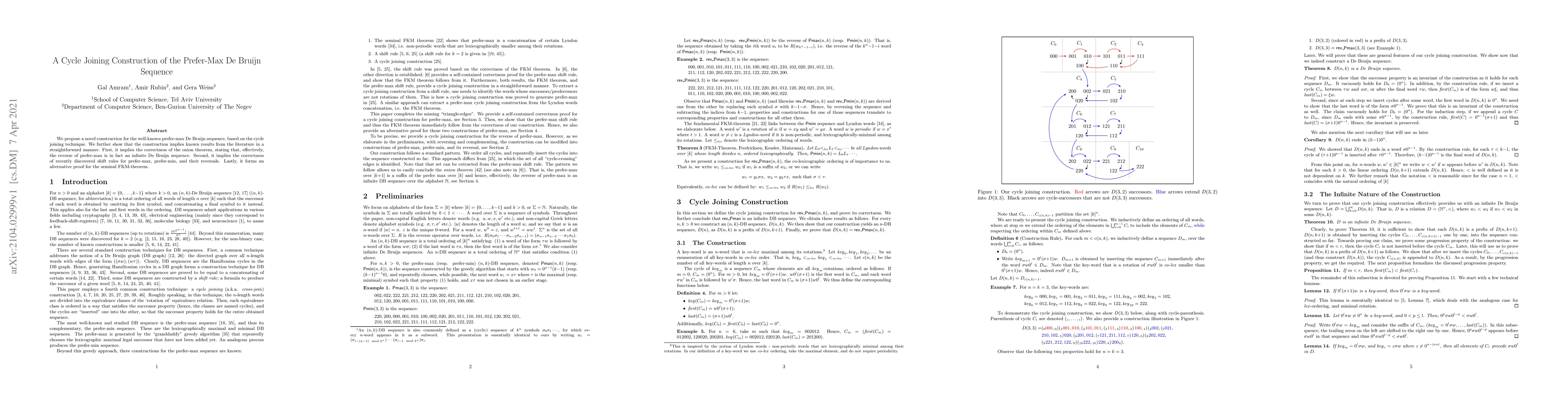 This paper introduces a new cycle joining construction method for the prefer-max De Bruijn sequence, which straightforwardly validates the onion theorem and recently discovered shift rules, while also providing an alternative proof for the FKM-theorem.