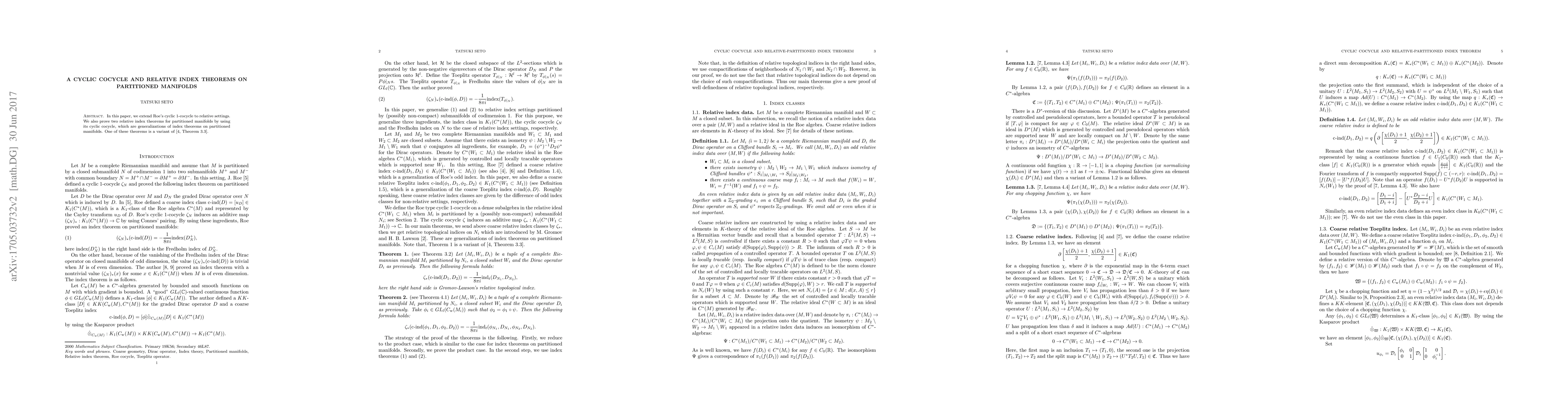 This paper extends Roe's cyclic 1-cocycle to relative settings and proves two generalized index theorems for partitioned manifolds using the cyclic cocycle, including a variant of a previously established theorem.
