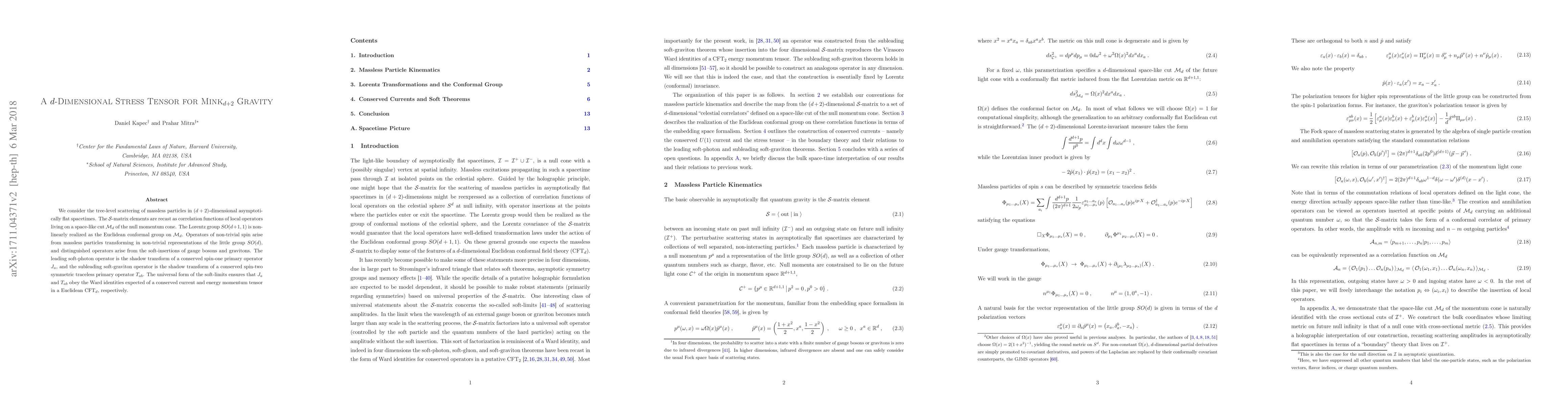 We consider the tree-level scattering of massless particles in $(d+2)$-dimensional asymptotically flat spacetimes. The $\mathcal{S}$-matrix elements are recast as correlation functions of local operators living on a space-like cut $\mathcal{M}_d$ of the null momentum cone. The Lorentz group $SO(d+1,1)$ is nonlinearly realized as the Euclidean conformal group on $\mathcal{M}_d$. Operators of non-trivial spin arise from massless particles transforming in non-trivial representations of the little group $SO(d)$, and distinguished operators arise from the soft-insertions of gauge bosons and gravitons. The leading soft-photon operator is the shadow transform of a conserved spin-one primary operator $J_a$, and the subleading soft-graviton operator is the shadow transform of a conserved spin-two symmetric traceless primary operator $T_{ab}$. The universal form of the soft-limits ensures that $J_a$ and $T_{ab}$ obey the Ward identities expected of a conserved current and energy momentum tensor in a Euclidean CFT$_d$, respectively.