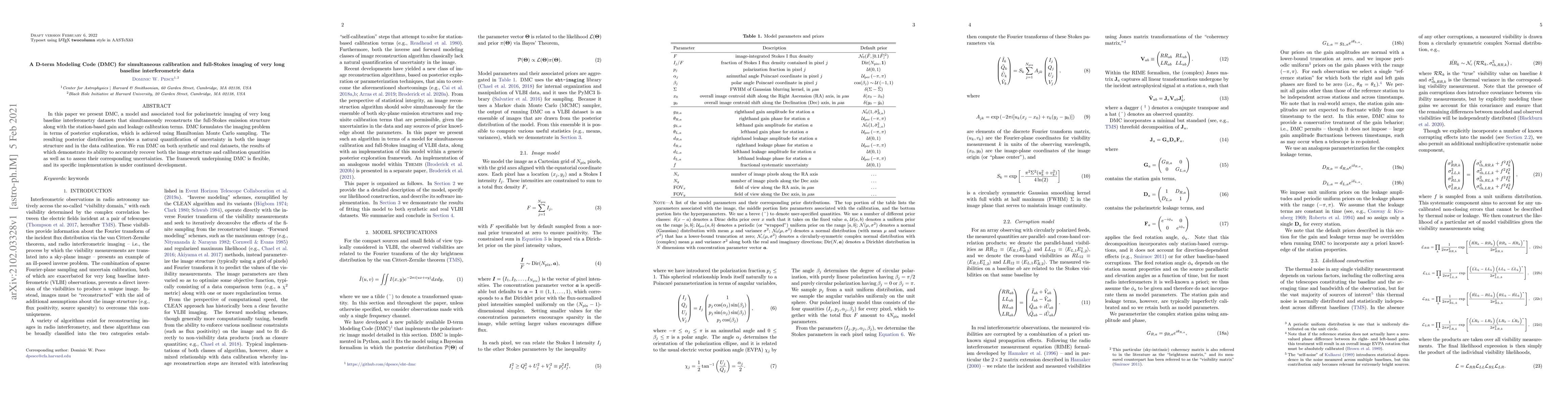 This paper introduces DMC, a modeling code for simultaneous calibration and full-Stokes imaging of very long baseline interferometry data. DMC reconstructs image structure and calibration terms using Hamiltonian Monte Carlo sampling, providing uncertainty quantification and demonstrated accuracy on both synthetic and real datasets.