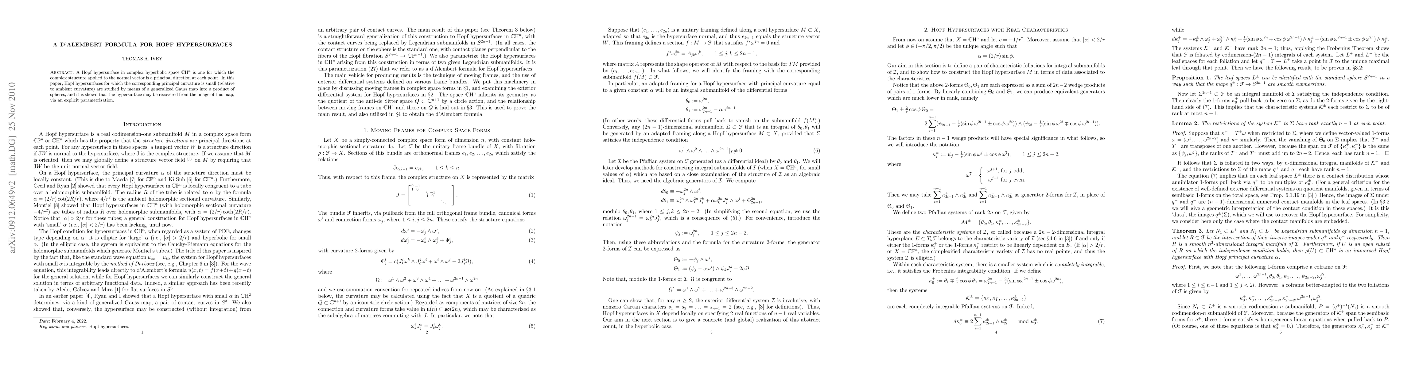 This paper explores Hopf hypersurfaces in complex hyperbolic space where the principal curvature is small relative to the ambient sectional curvature. It introduces a d'Alembert formula to recover the hypersurface from the image of a generalized Gauss map into a product of spheres.