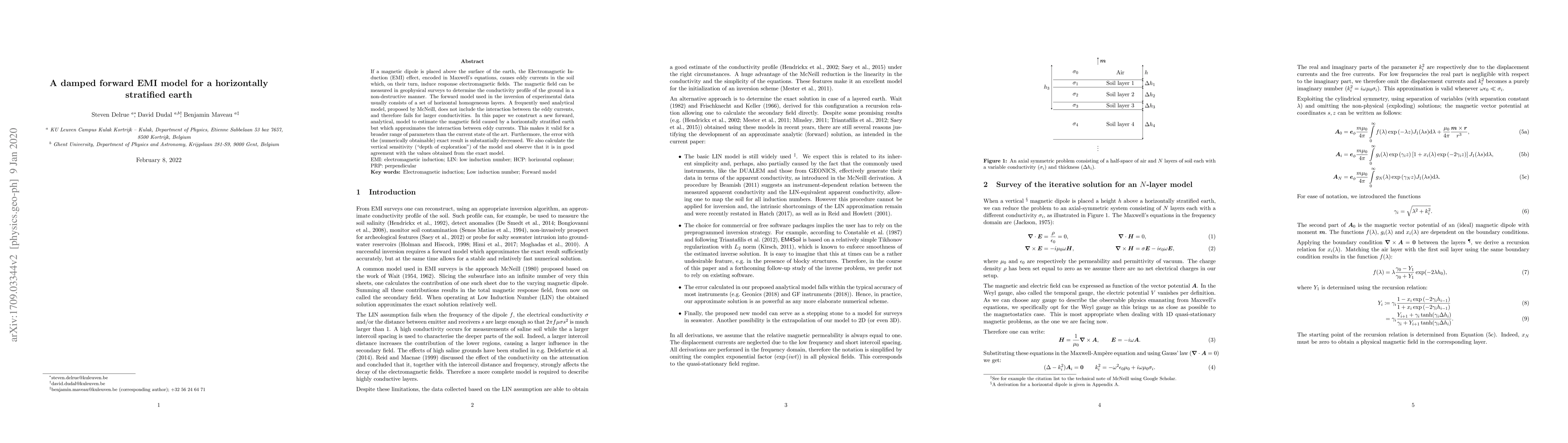 A new forward EMI model for a horizontally stratified earth is presented, improving accuracy over existing models by accounting for eddy current interactions and increasing its validity for a broader range of parameters.