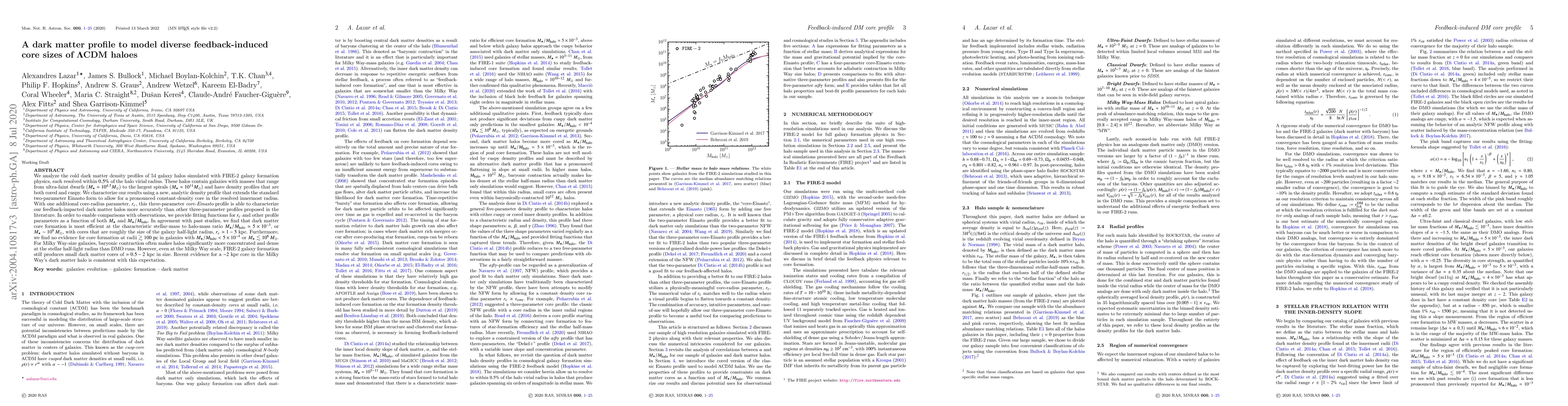 We analyze the cold dark matter density profiles of 54 galaxy halos simulated with FIRE-2 galaxy formation physics, each resolved within $0.5\%$ of the halo virial radius. These halos contain galaxies with masses that range from ultra-faint dwarfs ($M_\star \simeq 10^{4.5} M_{\odot}$) to the largest spirals ($M_\star \simeq 10^{11} M_{\odot}$) and have density profiles that are both cored and cuspy. We characterize our results using a new analytic density profile that extends the standard Einasto form to allow for a pronounced constant-density core in the resolved innermost radius. With one additional core-radius parameter, $r_{c}$, this "core-Einasto" profile is able to characterize the shape and normalization of our feedback-impacted dark matter halos. In order to enable comparisons with observations, we provide fitting functions for $r_{c}$ and other profile parameters as a function of both $M_\star$ and $M_{\star}/M_{\rm halo}$. In agreement with similar studies done in the literature, we find that dark matter core formation is most efficient at the characteristic stellar-mass to halo-mass ratio $M_\star/M_{\rm halo} \simeq 5 \times 10^{-3}$, or $M_{\star} \sim 10^9 \, M_{\odot}$, with cores that are roughly the size of the galaxy half-light radius, $r_{c} \simeq 1-5$ kpc. Furthermore, we find no evidence for core formation at radii $\gtrsim 100\ \rm pc$ in galaxies with $M_{\star}/M_{\rm halo} < 5\times 10^{-4}$ or $M_\star \lesssim 10^6 \, M_{\odot}$. For Milky Way-size galaxies, baryonic contraction often makes halos significantly more concentrated and dense at the stellar half-light radius than dark matter only runs. However, even at the Milky Way scale, FIRE-2 galaxy formation still produces small dark matter cores of $\simeq 0.5-2$ kpc in size. Recent evidence for a ${\sim} 2$ kpc core in the Milky Way's dark matter halo is consistent with this expectation.