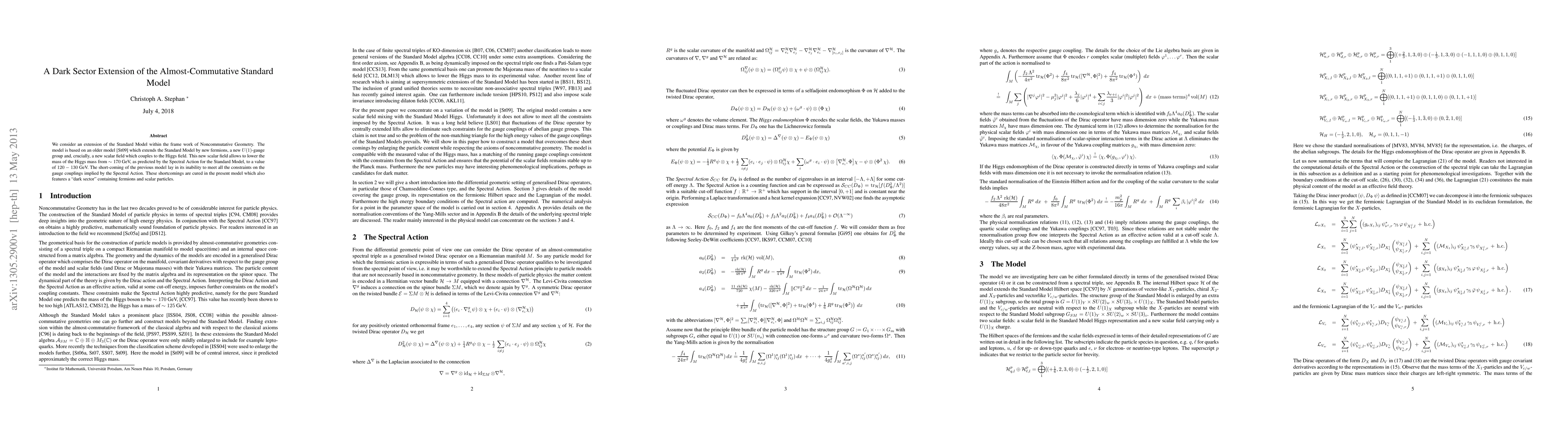 We consider an extension of the Standard Model within the frame work of Noncommutative Geometry. The model is based on an older model [St09] which extends the Standard Model by new fermions, a new U(1)-gauge group and, crucially, a new scalar field which couples to the Higgs field. This new scalar field allows to lower the mass of the Higgs mass from ~170 GeV, as predicted by the Spectral Action for the Standard Model, to a value of 120-130 GeV. The short-coming of the previous model lay in its inability to meet all the constraints on the gauge couplings implied by the Spectral Action. These shortcomings are cured in the present model which also features a "dark sector" containing fermions and scalar particles.
