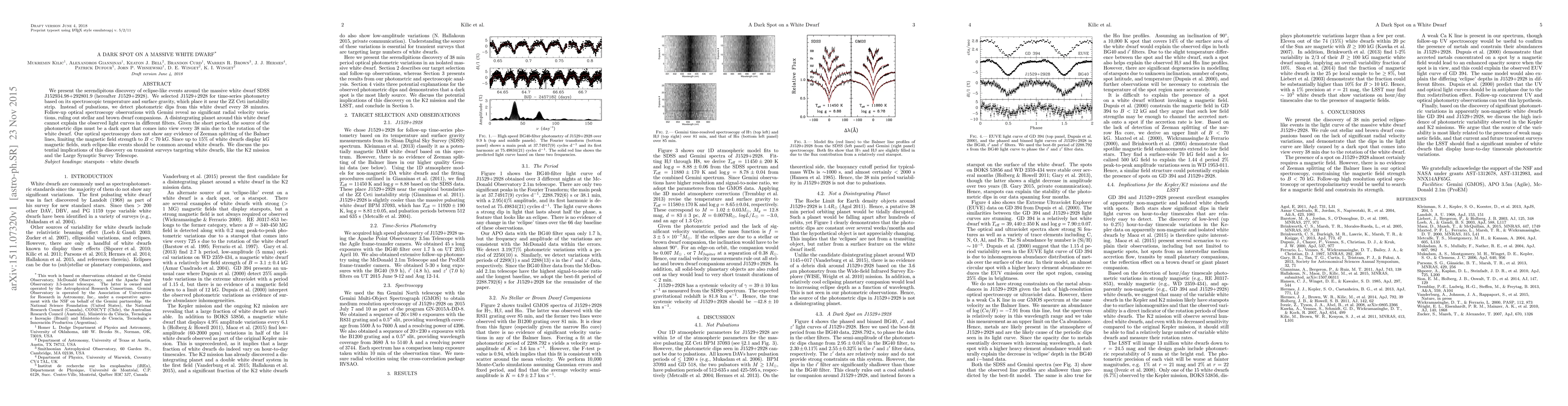 The paper reports the discovery of eclipse-like events around the massive white dwarf SDSS J1529+2928, attributed to a dark spot rotating into view every 38 minutes, with no evidence of stellar or brown dwarf companions or a disintegrating planet. The findings suggest that such transient phenomena may be common among magnetic white dwarfs.