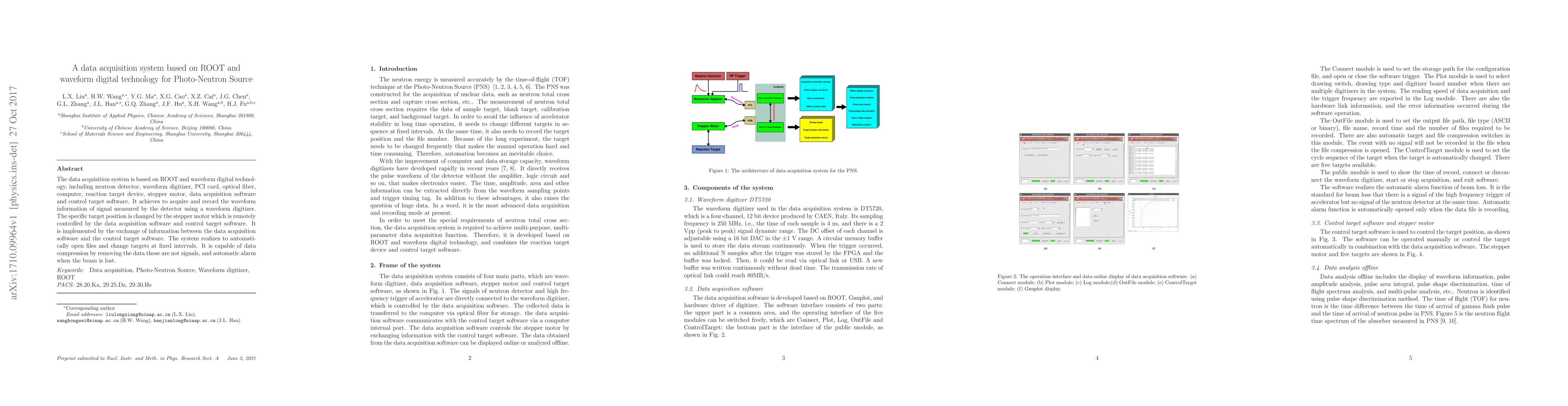 The data acquisition system is based on ROOT and waveform digital technology, including neutron detector, waveform digitizer, PCI card, optical fiber, computer, reaction target device, stepper motor, data acquisition software and control target software. It achieves to acquire and record the waveform information of signal measured by the detector using a waveform digitizer. The specific target position is changed by the stepper motor which is remotely controlled by the data acquisition software and control target software. It is implemented by the exchange of information between the data acquisition software and the control target software. The system realizes to automatically open files and change targets at fixed intervals. It is capable of data compression by removing the data those are not signals, and automatic alarm when the beam is lost.