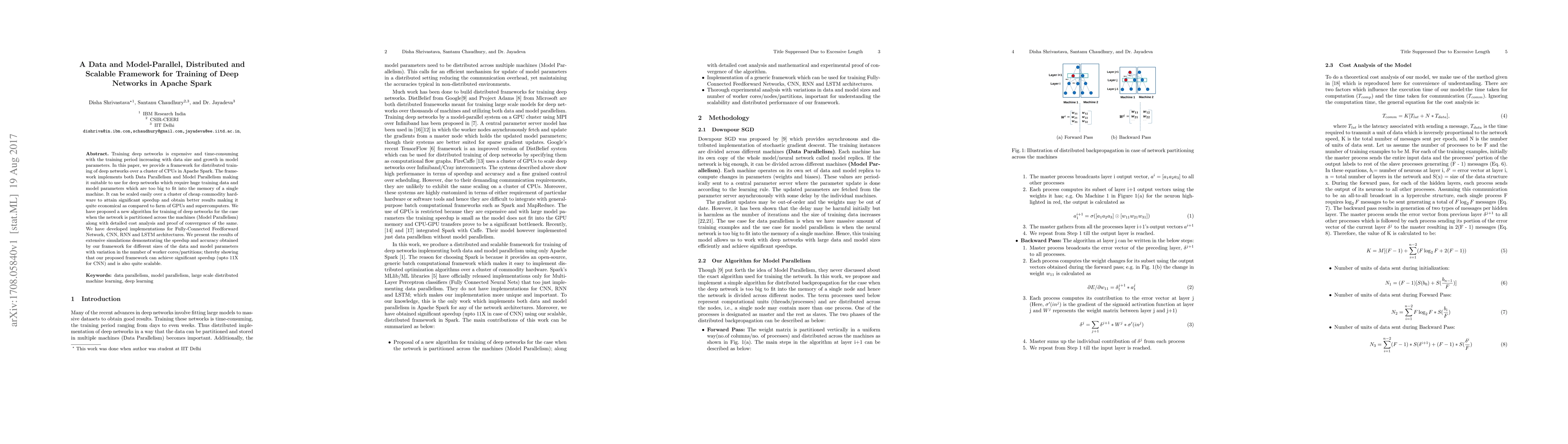 Researchers developed a framework for distributed training of deep networks in Apache Spark, achieving significant speedups (up to 11X) and scalability using commodity hardware.
