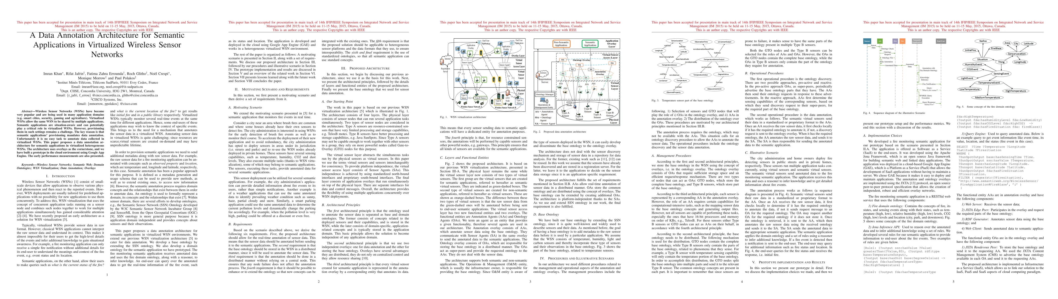 Wireless Sensor Networks (WSNs) have become very popular and are being used in many application domains (e.g. smart cities, security, gaming and agriculture). Virtualized WSNs allow the same WSN to be shared by multiple applications. Semantic applications are situation-aware and can potentially play a critical role in virtualized WSNs. However, provisioning them in such settings remains a challenge. The key reason is that semantic applications provisioning mandates data annotation. Unfortunately it is no easy task to annotate data collected in virtualized WSNs. This paper proposes a data annotation architecture for semantic applications in virtualized heterogeneous WSNs. The architecture uses overlays as the cornerstone, and we have built a prototype in the cloud environment using Google App Engine. The early performance measurements are also presented.