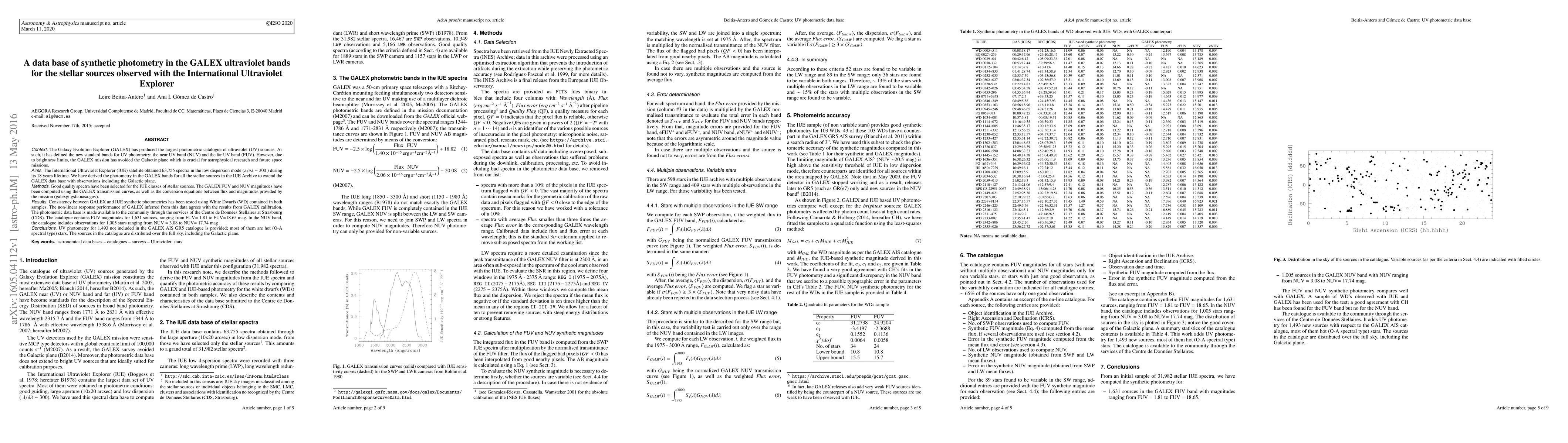 This paper compiles synthetic photometry in GALEX ultraviolet bands for stellar sources observed by the IUE satellite, extending the GALEX database to include the Galactic plane. The derived FUV and NUV magnitudes for 1,631 and 1,005 stars, respectively, are available through the Centre de Données Stellaires at Strasbourg.