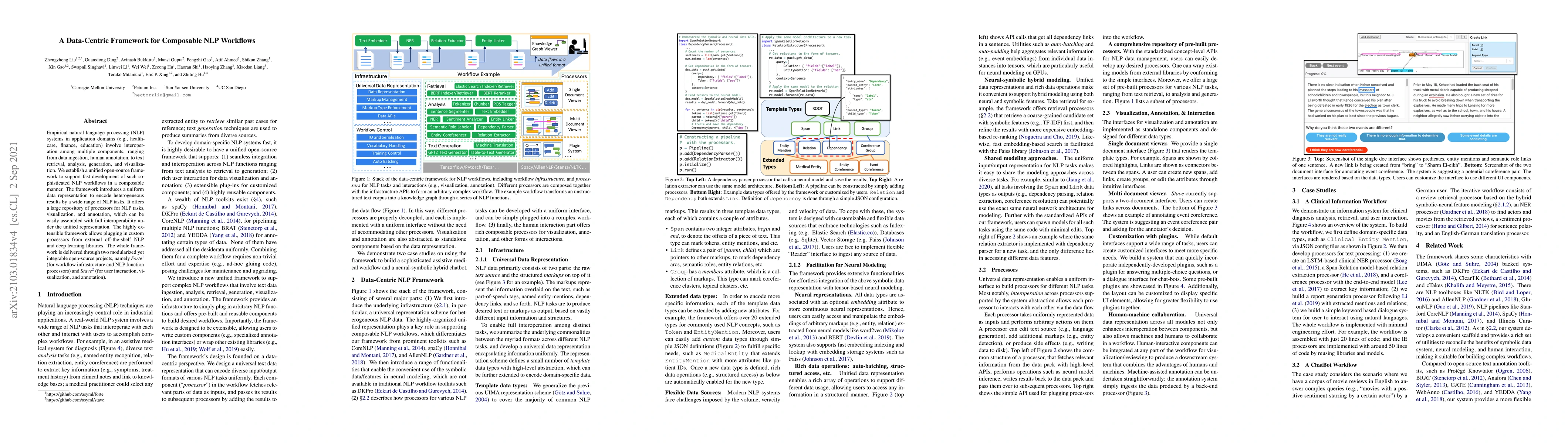 This paper presents a data-centric framework for composable NLP workflows, comprising Forte and Stave, to facilitate the development of sophisticated NLP systems across various domains. The framework supports interoperability among diverse NLP components through a uniform data representation.