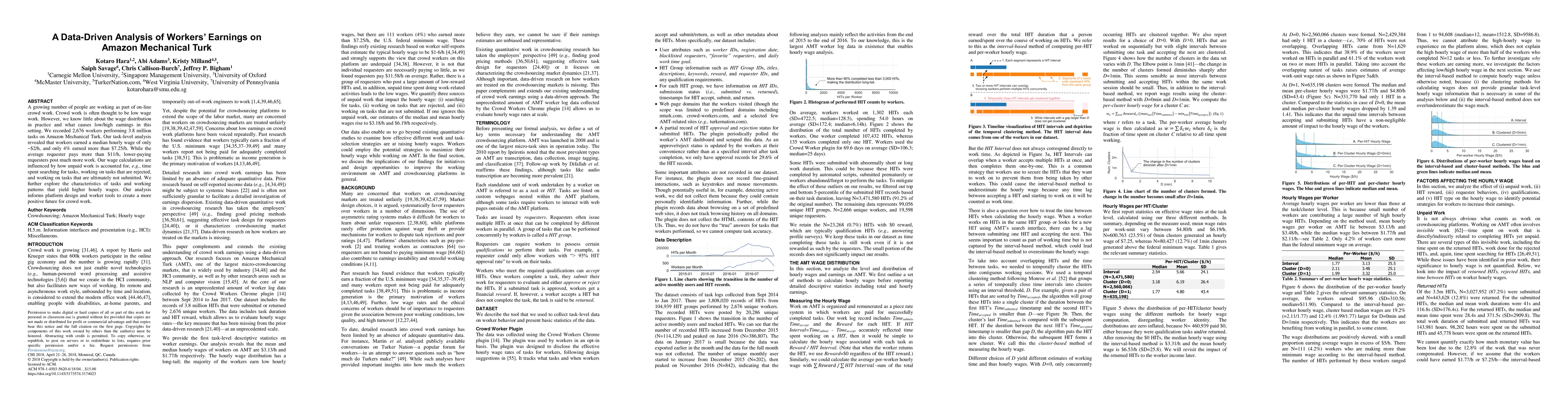 This study analyzes earnings from Amazon Mechanical Turk, revealing a median hourly wage of \$2/h with only 4% of workers earning over \$7.25/h. The research highlights the impact of unpaid work on wage calculations and identifies factors contributing to higher earnings, aiming to inform platform improvements for better worker compensation.