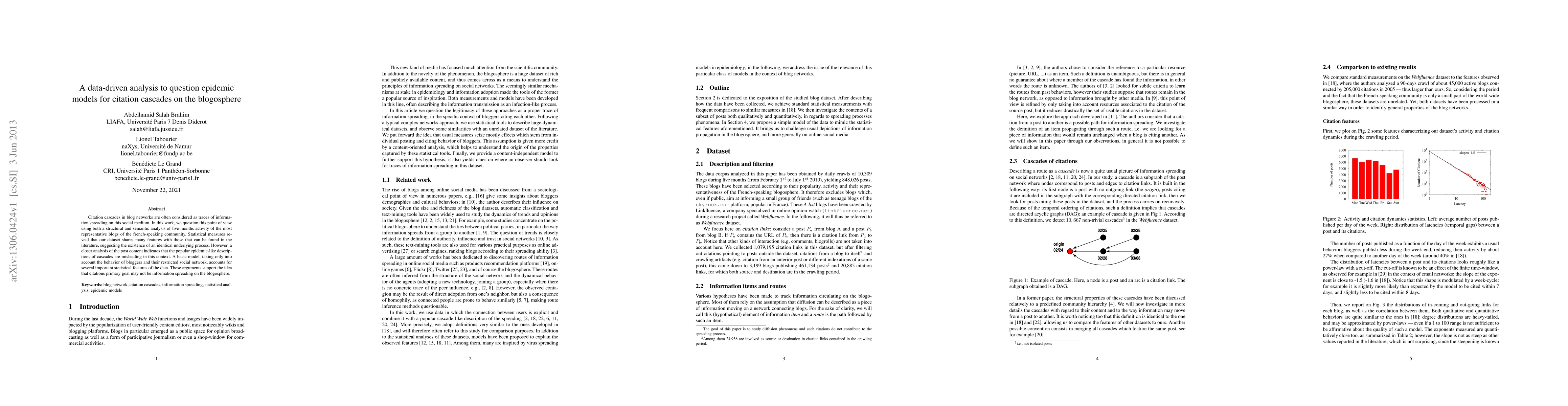 Citation cascades in blog networks are often considered as traces of information spreading on this social medium. In this work, we question this point of view using both a structural and semantic analysis of five months activity of the most representative blogs of the french-speaking community.Statistical measures reveal that our dataset shares many features with those that can be found in the literature, suggesting the existence of an identical underlying process. However, a closer analysis of the post content indicates that the popular epidemic-like descriptions of cascades are misleading in this context.A basic model, taking only into account the behavior of bloggers and their restricted social network, accounts for several important statistical features of the data.These arguments support the idea that citations primary goal may not be information spreading on the blogosphere.