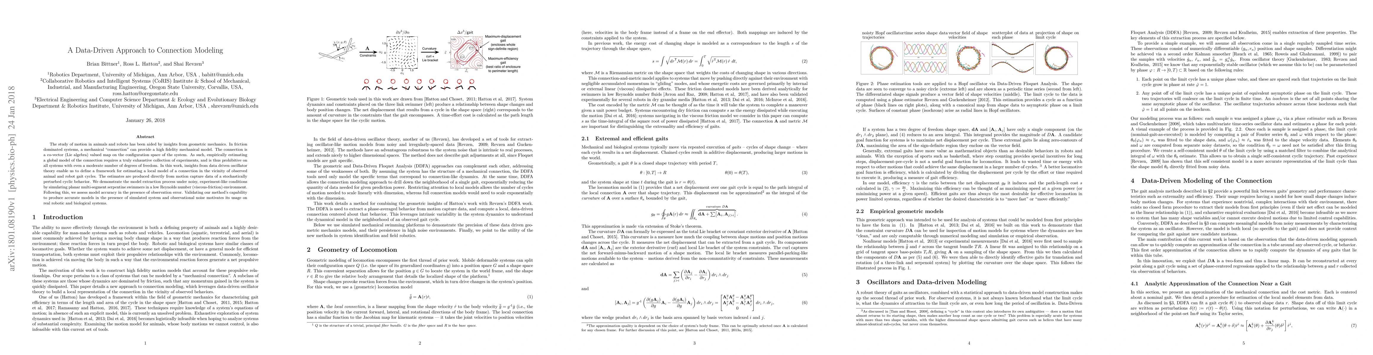 The study of motion in animals and robots has been aided by insights from geometric mechanics. In friction dominated systems, a mechanical "connection" can provide a high fidelity mechanical model. The connection is a co-vector (Lie algebra) valued map on the configuration space of the system. As such, empirically estimating a global model of the connection requires a truly exhaustive collection of experiments, and is thus prohibitive on all systems with even a moderate number of degrees of freedom. In this work, insights from data driven oscillator theory enable us to define a framework for estimating a local model of a connection in the vicinity of observed animal and robot gait cycles. The estimates are produced directly from motion capture data of a stochastically perturbed cyclic behavior. We demonstrate the model extraction process under noisy, experiment-like conditions by simulating planar multi-segment serpentine swimmers in a low Reynolds number (viscous-friction) environment. Following this, we assess model accuracy in the presence of observation error. Validating our method's capability to produce accurate models in the presence of simulated system and observational noise motivates its usage on real robotic and biological systems.