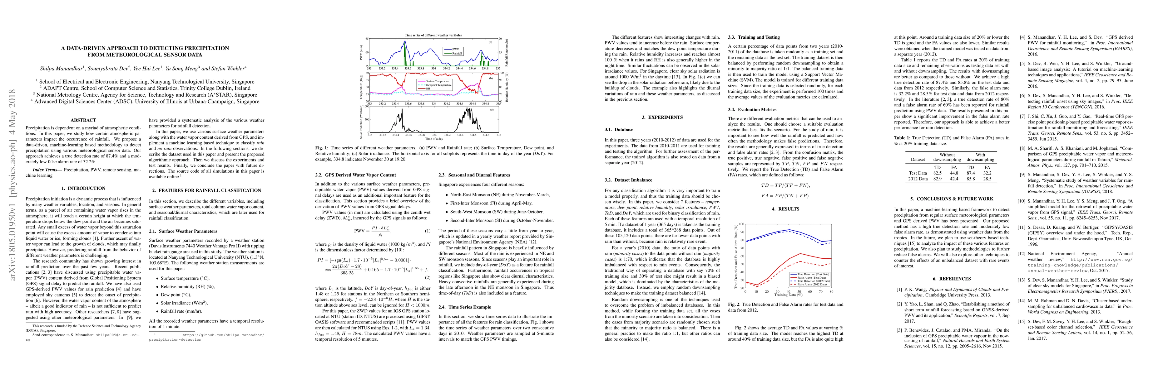 Researchers developed a data-driven approach to detect precipitation using meteorological sensor data with an 87.4% true detection rate.
