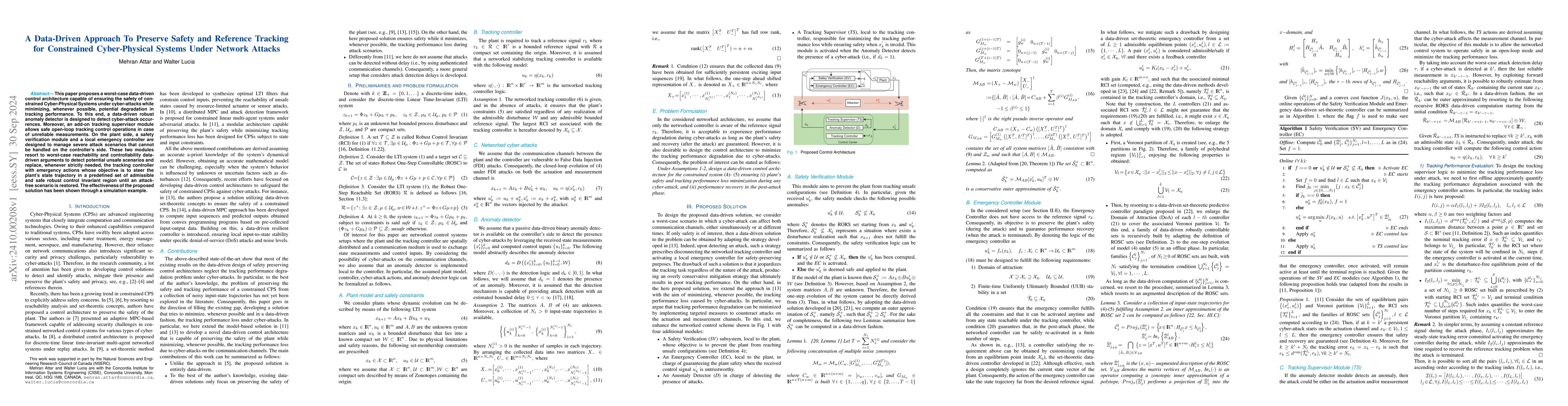 This paper introduces a data-driven control architecture to maintain safety and tracking in constrained Cyber-Physical Systems amidst cyber-attacks, utilizing a robust anomaly detector and a tracking supervisor for reliable operations. Simulation results demonstrate the approach's effectiveness.