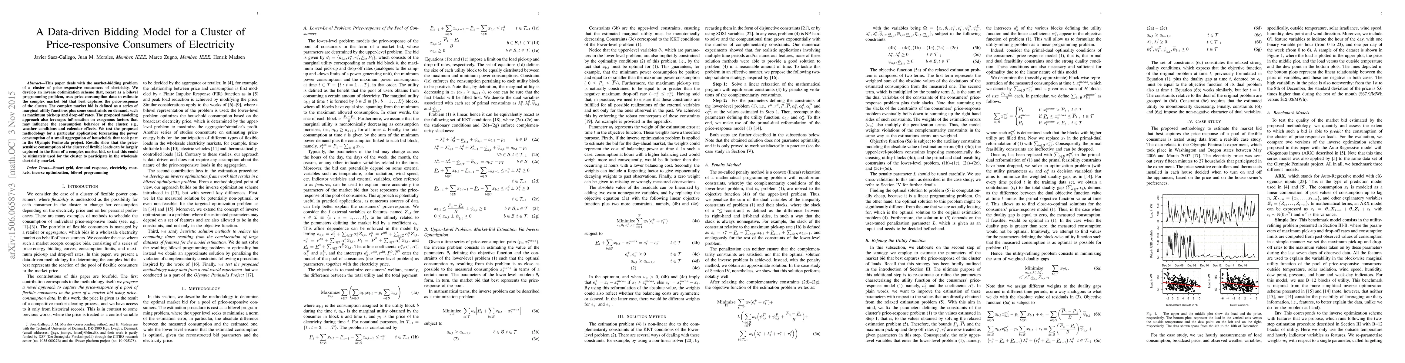 This paper deals with the market-bidding problem of a cluster of price-responsive consumers of electricity. We develop an inverse optimization scheme that, recast as a bilevel programming problem, uses price-consumption data to estimate the complex market bid that best captures the price-response of the cluster. The complex market bid is defined as a series of marginal utility functions plus some constraints on demand, such as maximum pick-up and drop-off rates. The proposed modeling approach also leverages information on exogenous factors that may influence the consumption behavior of the cluster, e.g., weather conditions and calendar effects. We test the proposed methodology for a particular application: forecasting the power consumption of a small aggregation of households that took part in the Olympic Peninsula project. Results show that the price-sensitive consumption of the cluster of flexible loads can be largely captured in the form of a complex market bid, so that this could be ultimately used for the cluster to participate in the wholesale electricity market.