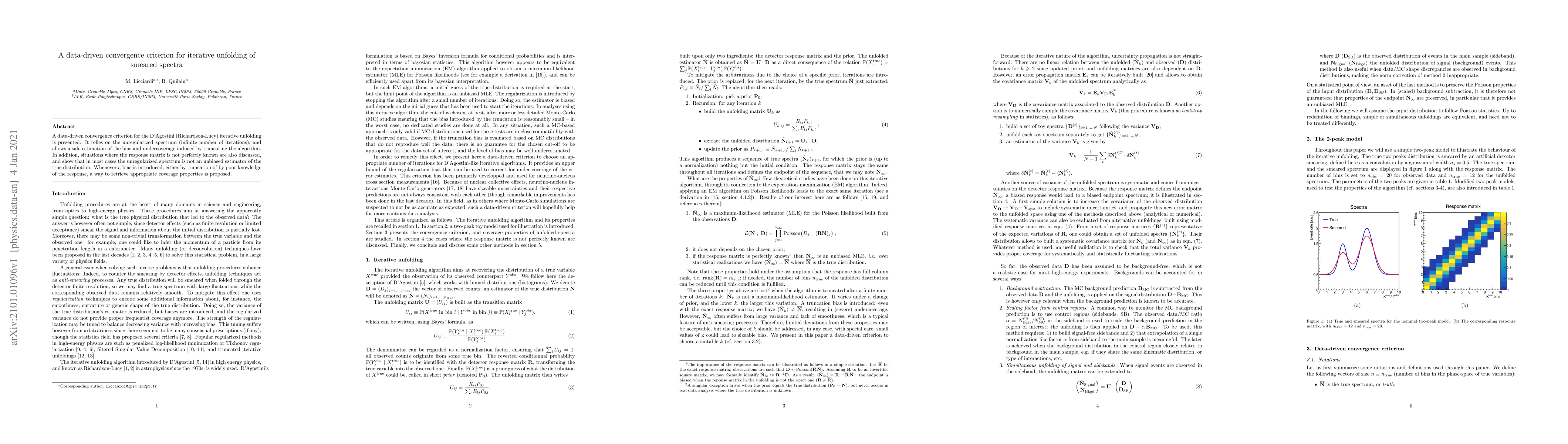 This paper introduces a data-driven convergence criterion for iterative unfolding of spectra using the D'Agostini method, enabling estimation of bias and undercoverage from truncation. It also addresses scenarios with imperfect knowledge of the response matrix, proposing a method to correct for introduced biases.