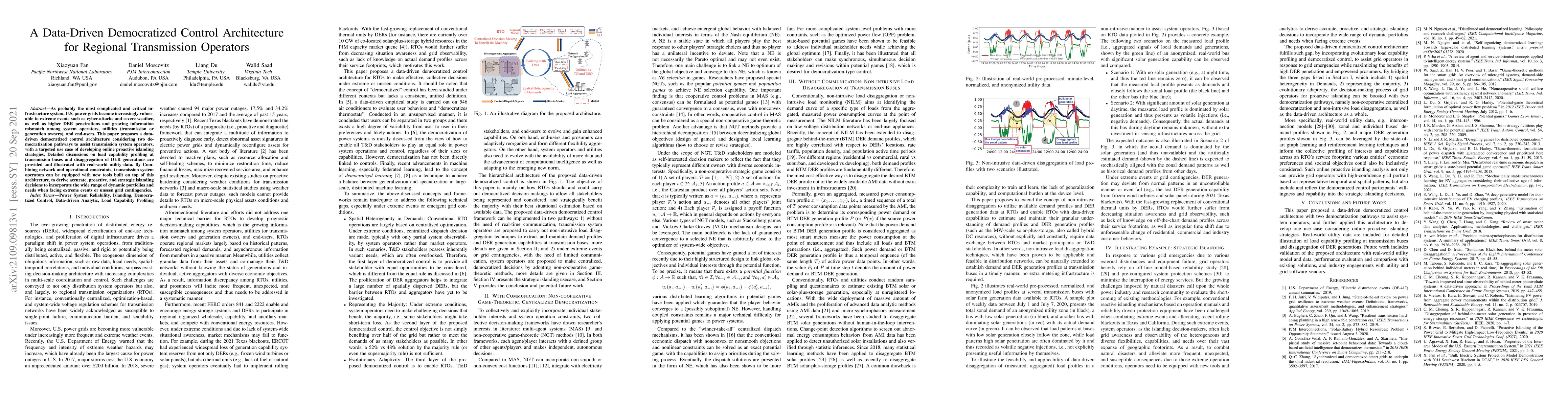 As probably the most complicated and critical infrastructure system, U.S. power grids become increasingly vulnerable to extreme events such as cyber-attacks and severe weather, as well as higher DER penetrations and growing information mismatch among system operators, utilities (transmission or generation owners), and end-users. This paper proposes a data-driven democratized control architecture considering two democratization pathways to assist transmission system operators, with a targeted use case of developing online proactive islanding strategies. Detailed discussions on load capability profiling at transmission buses and disaggregation of DER generations are provided and illustrated with real-world utility data. By Combining network and operational constraints, transmission system operators can be equipped with new tools built on top of this architecture, to derive accurate, proactive, and strategic islanding decisions to incorporate the wide range of dynamic portfolios and needs when facing extreme events or unseen grid contingencies.